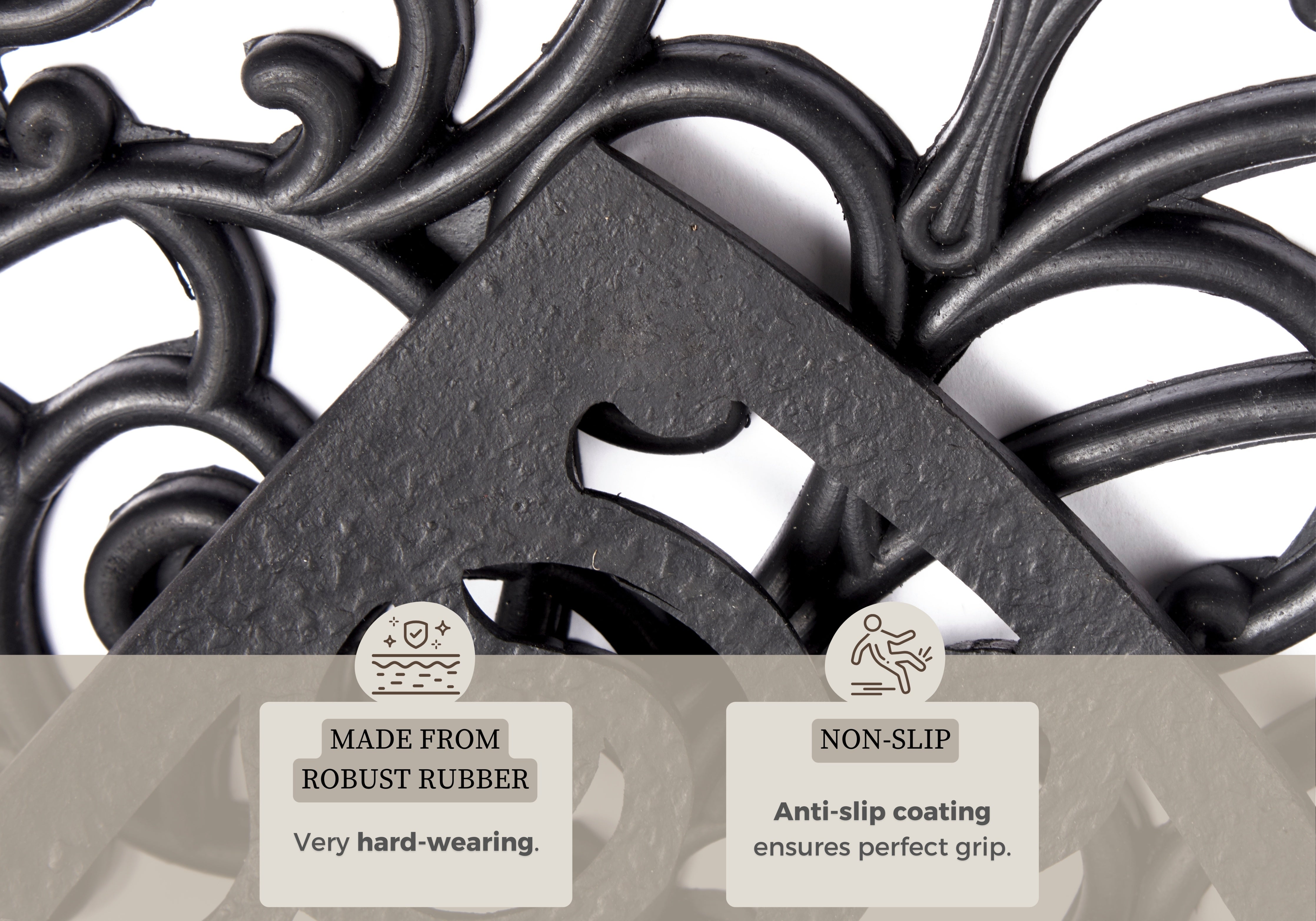 Mix Mats måtten er ikke kun smuk, men også utrolig funktionel. Den skridsikre gummibagside sørger for, at måtten bliver liggende, hvor den skal, og beskytter samtidig dit gulv mod snavs og ridser. Måtten er yderst slidstærk og modstandsdygtig over for fugt, hvilket gør den ideel til det danske klima. Det unikke støbejernslook giver et sofistikeret touch, mens den robuste konstruktion sikrer langvarig holdbarhed. Måtten er nem at rengøre og kræver minimal vedligeholdelse.