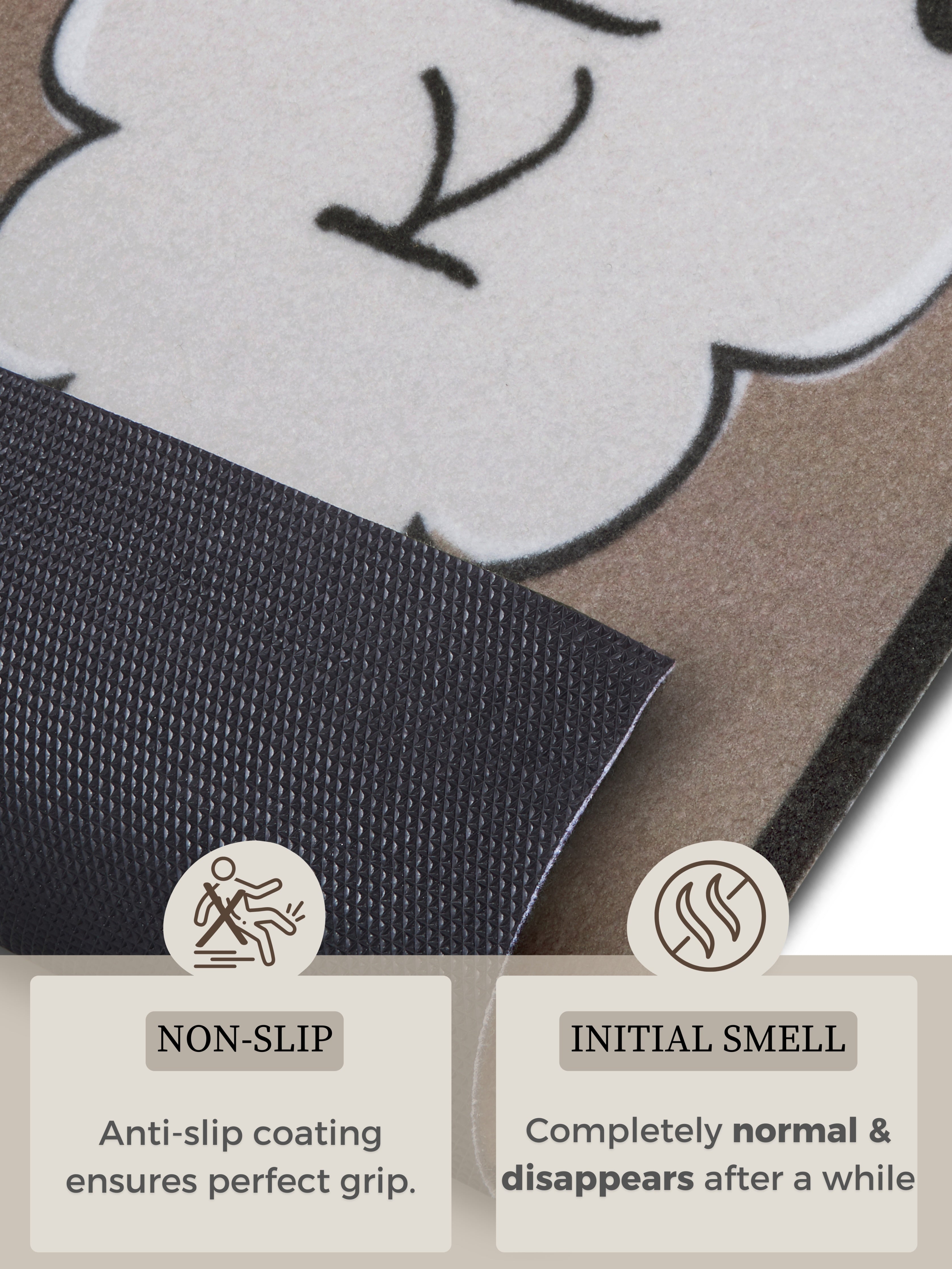 Vær opmærksom på, at nye tæpper kan have en midlertidig lugt ved udpakning, som stammer fra produktionen og indpakningen. Dette er normalt og aftager typisk inden for 1–2 uger efter udpakning, især ved god udluftning. Denne lugt betragtes ikke som en produktfejl.