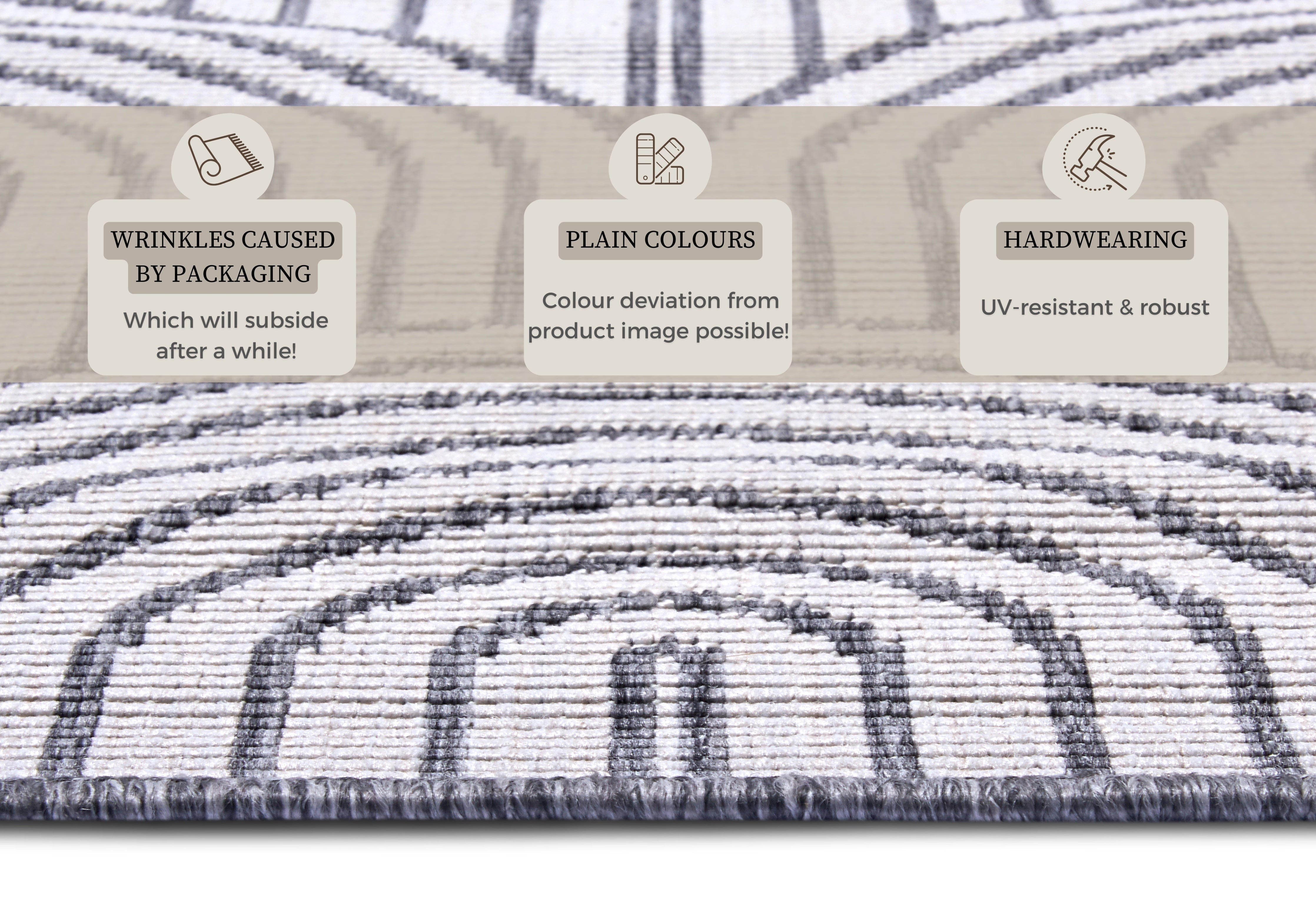 Vær opmærksom på, at nye tæpper kan have en midlertidig lugt ved udpakning, som stammer fra produktionen og indpakningen. Dette er normalt og aftager typisk inden for 1–2 uger efter udpakning, især ved god udluftning. Denne lugt betragtes ikke som en produktfejl.