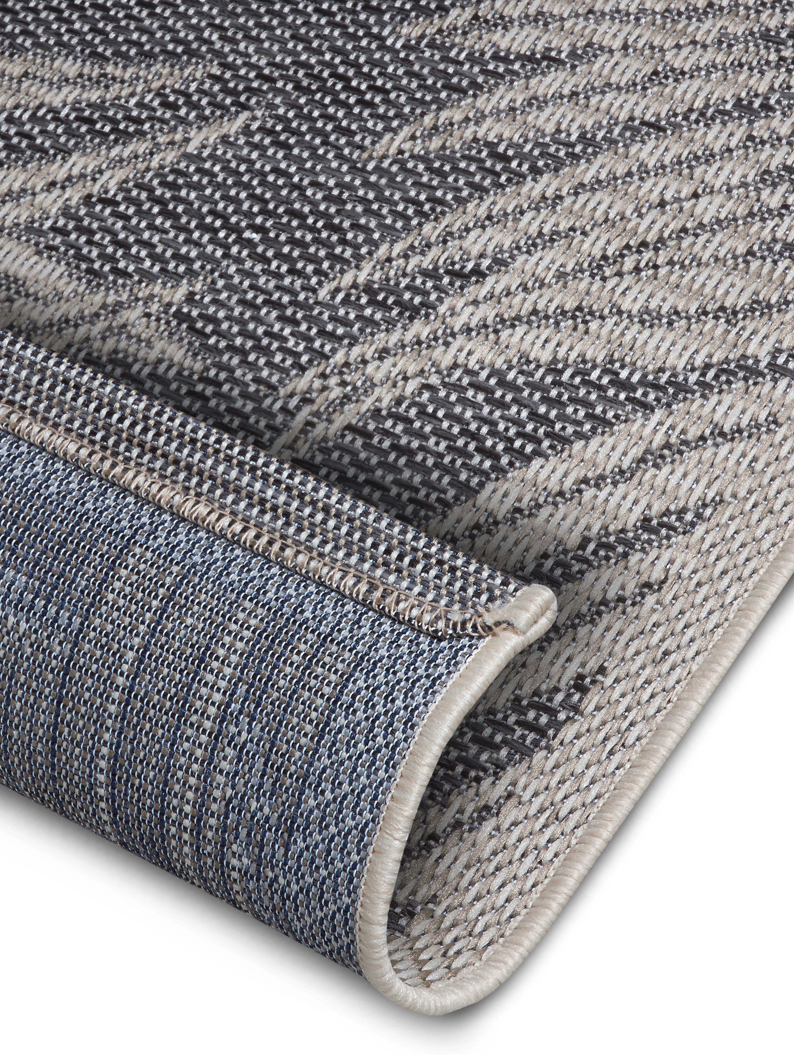 Clyde-tæppet er designet til at modstå vind og vejr. Den fladvævede struktur gør det ideelt til udendørs brug på terrassen, altanen eller i haven. Det er både vejrbestandigt og UV-beskyttet, så du kan nyde dets elegante udseende sæson efter sæson. Tæppets latexbagside sikrer et godt greb på underlaget og forhindrer det i at skride. Tæppets alsidighed gør det også velegnet til indendørs brug, hvor det vil tilføje et strejf af elegance til ethvert rum.