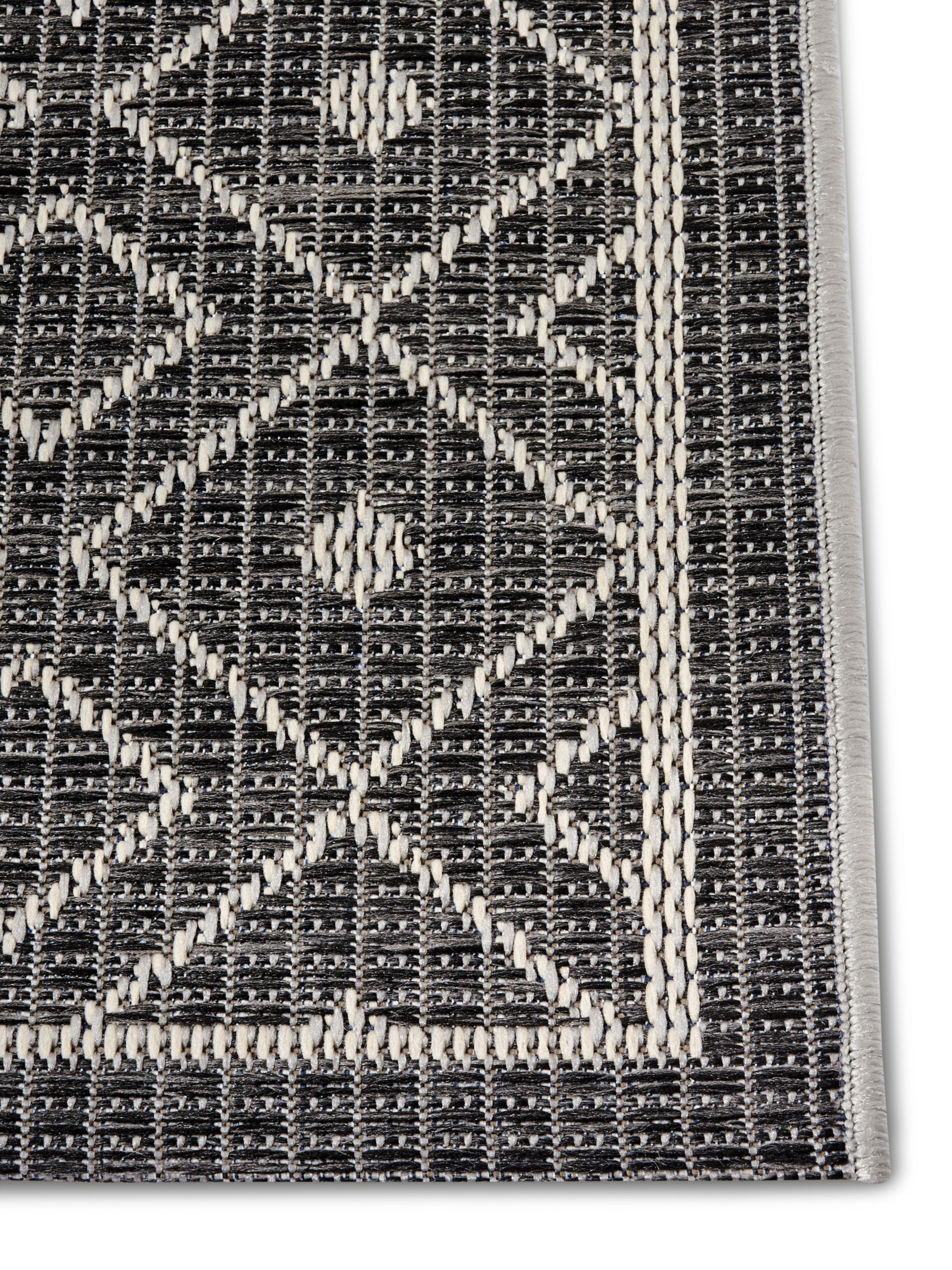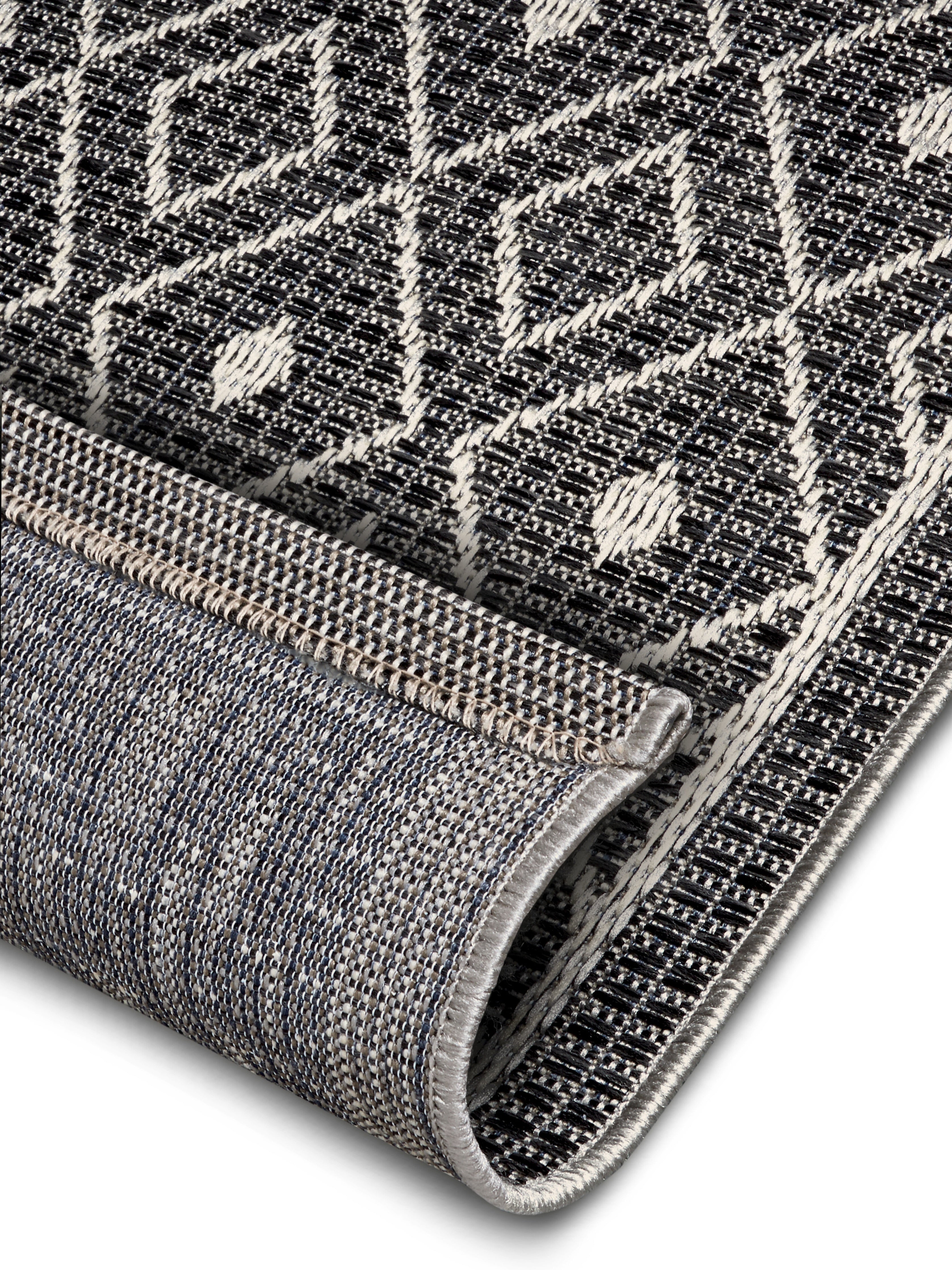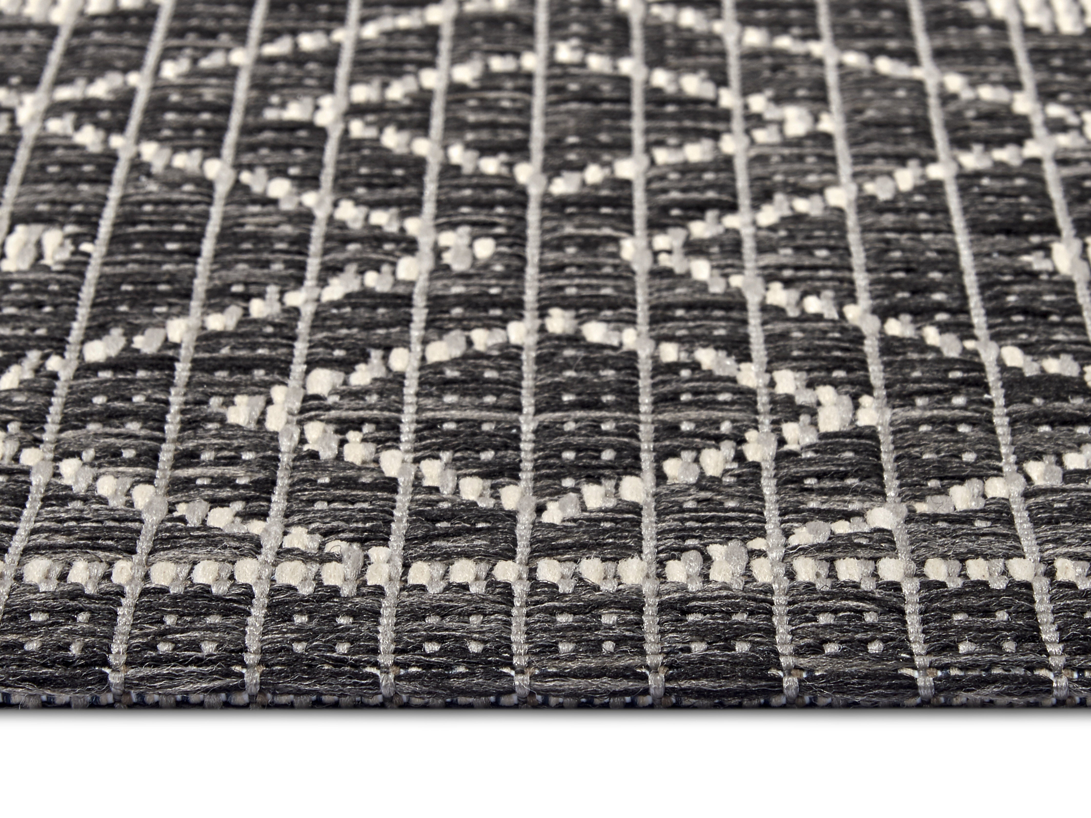 Clyde-tæppets fladvævede struktur gør det utroligt robust og ideelt til udendørs brug. Den slidstærke polypropylen er modstandsdygtig overfor både solens UV-stråler og varierende vejrforhold, så du kan nyde tæppet sæson efter sæson. Den praktiske latexbagside sikrer et godt greb på underlaget og forhindrer, at tæppet glider. Tæppets alsidighed gør det også velegnet til indendørs brug, hvor det kan tilføje et strejf af naturlig elegance til ethvert rum.