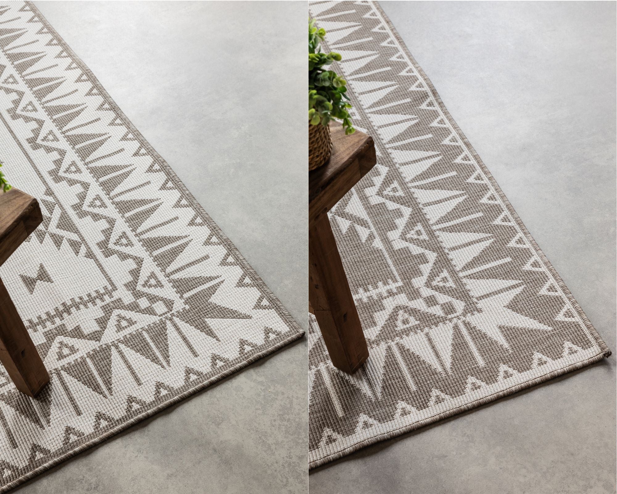 Gemini tæppet er en sand multikunstner. Det er lige så velegnet til stuen som til terrassen, takket være dets robuste og vejrbestandige design. Det fladvævede design gør det ideelt til gulvvarme, mens den slidstærke polypropylen konstruktion sikrer, at det kan modstå daglig slitage. En ekstra bonus er tæppets reversible design, der giver dig to farvekombinationer i ét tæppe, så du nemt kan forny dit look. Tæppet er desuden smudsafvisende, hvilket gør det nemt at holde rent og pænt.