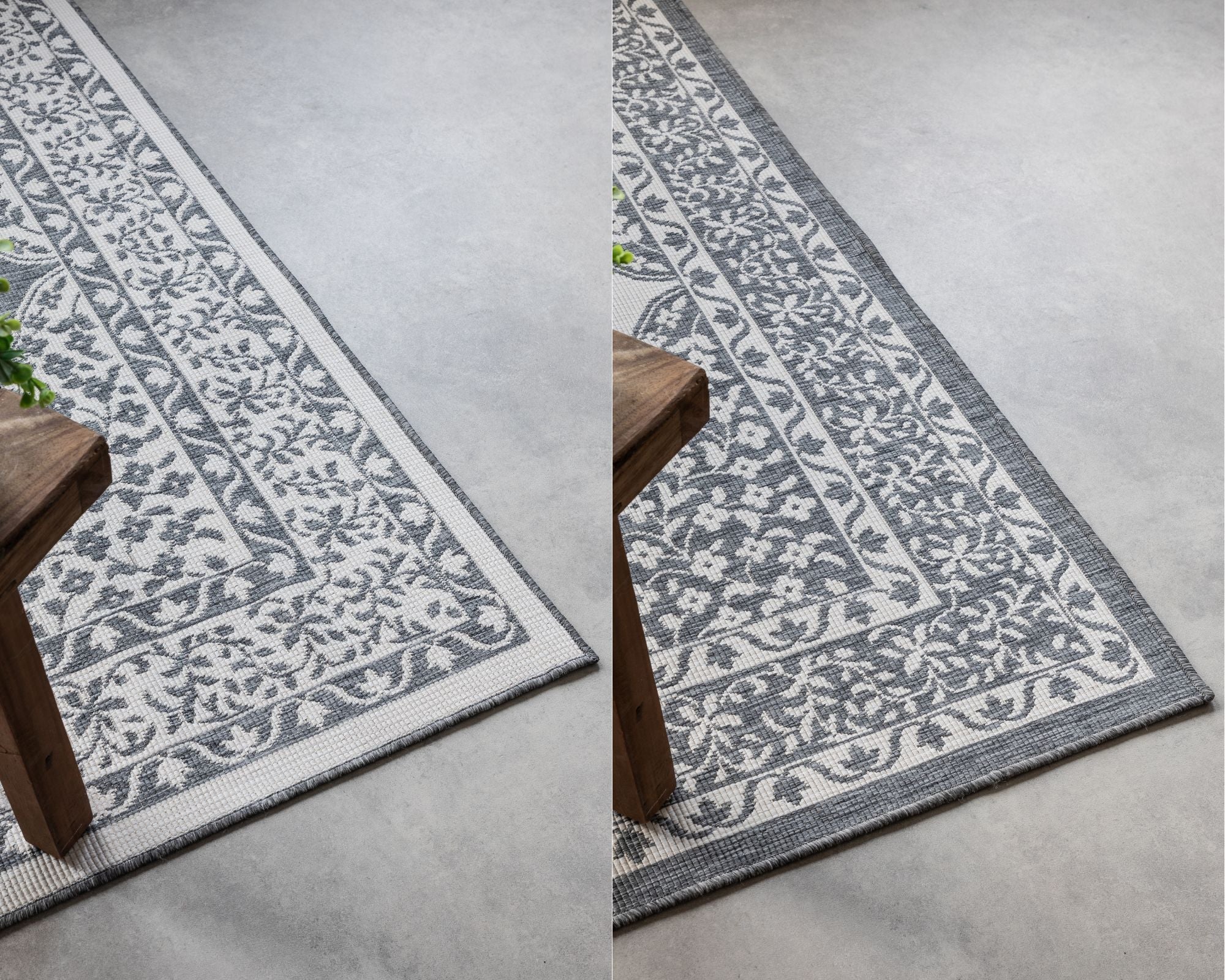 Gemini tæppet er en sand multikunstner. Det er lige så velegnet til at skabe hygge i stuen som til at pifte din terrasse eller altan op. Den fladvævede konstruktion gør det robust, smudsafvisende og vejrbestandigt, perfekt til udendørs brug. Tæppet er desuden vendbart, så du får to forskellige farvenuancer i ét tæppe, hvilket giver dig ekstra fleksibilitet i din indretning. Det er også egnet til gulvvarme, så du kan nyde komforten året rundt. Den slidstærke polypropylen bagside sikrer stabilitet og forlænger tæppets levetid.