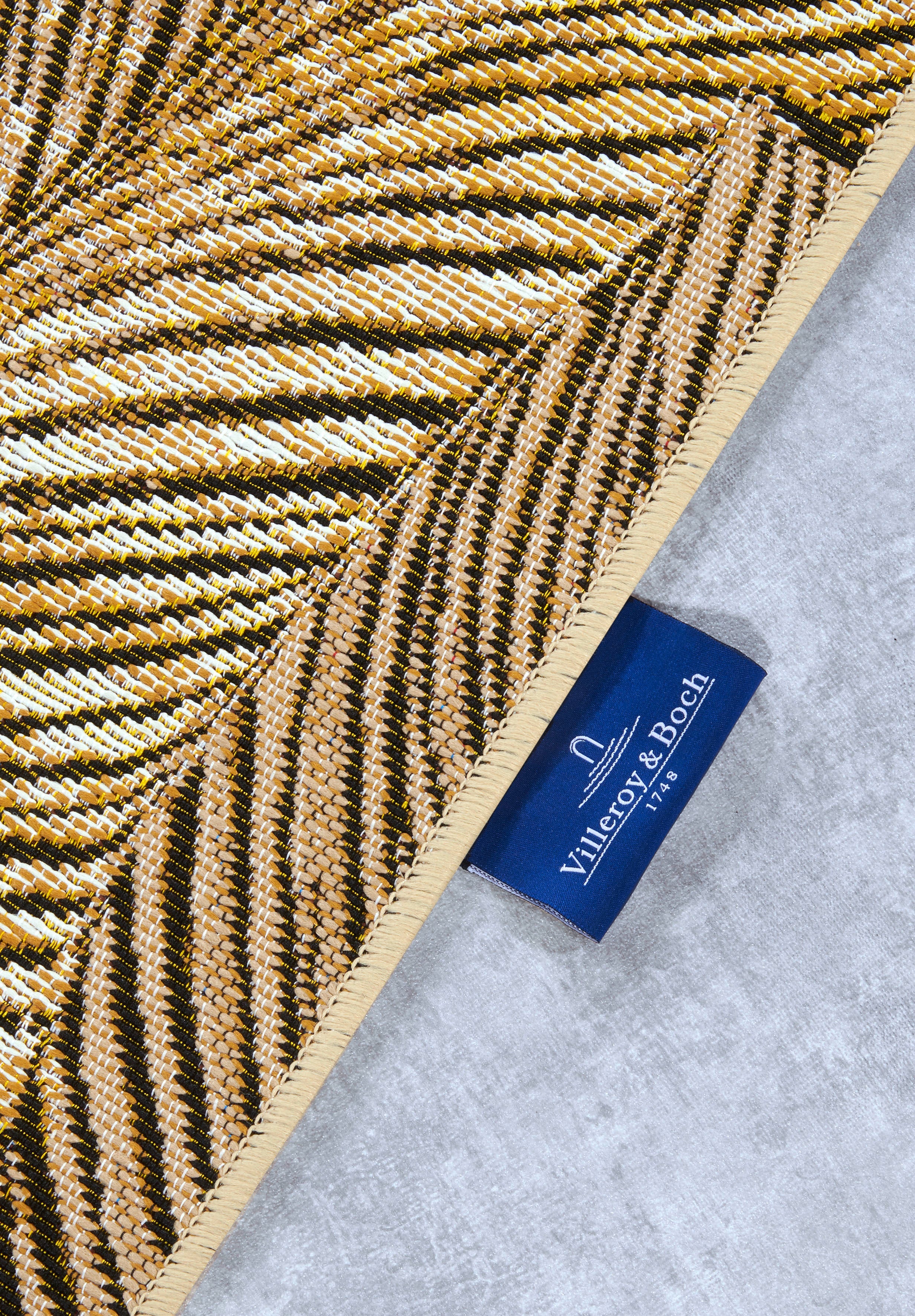 Forkæl dit hjem med et strejf af luksus og funktionalitet med Villeroy & Boch - Inde&Udendørs Tæppe fra Kollektion 1767. Dette elegante tæppe i en sofistikeret guld/sort farvekombination er fremstillet af en slidstærk blanding af polyester og BCF, der giver et stilfuldt og holdbart resultat, perfekt til både indendørs og udendørs brug.