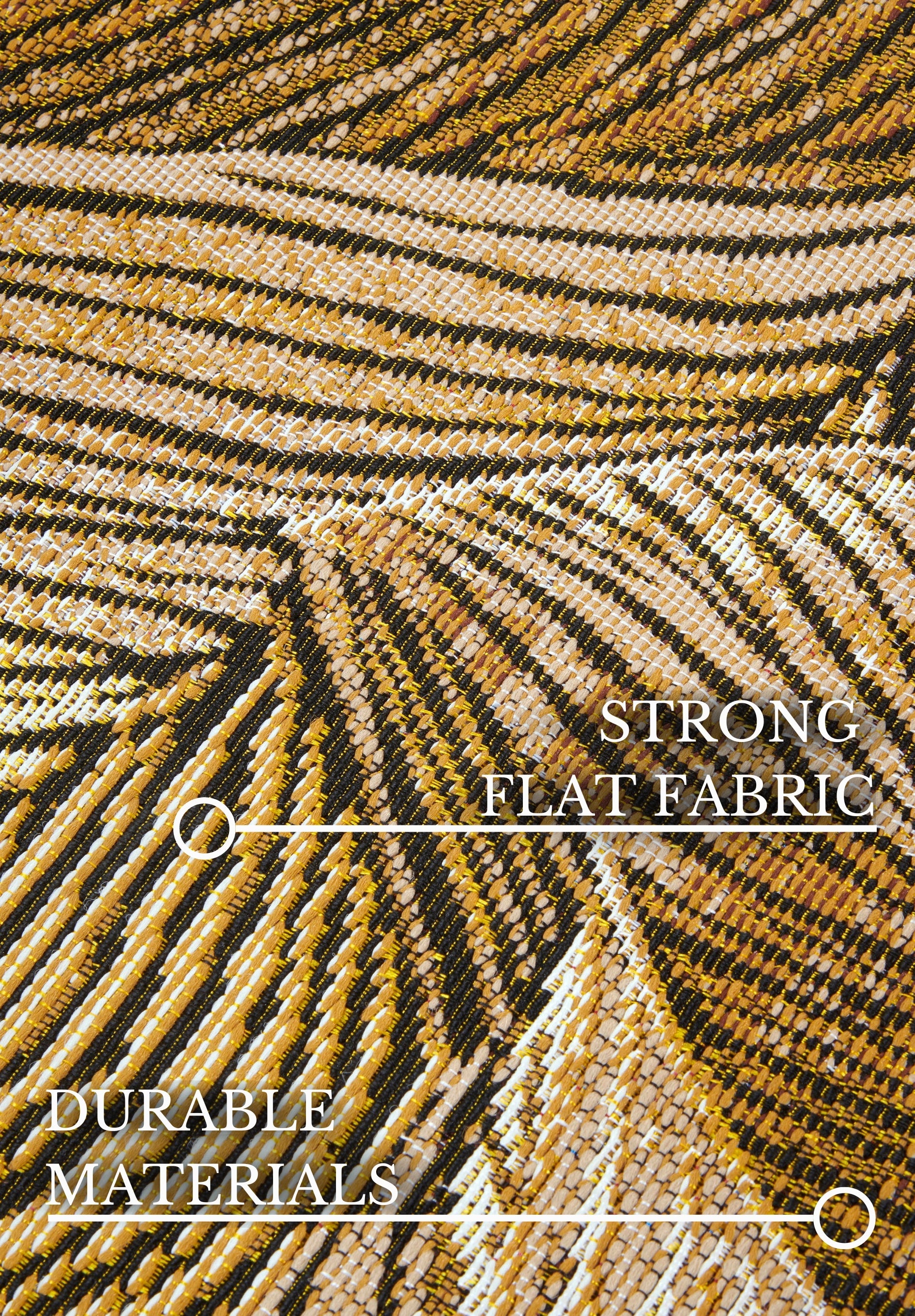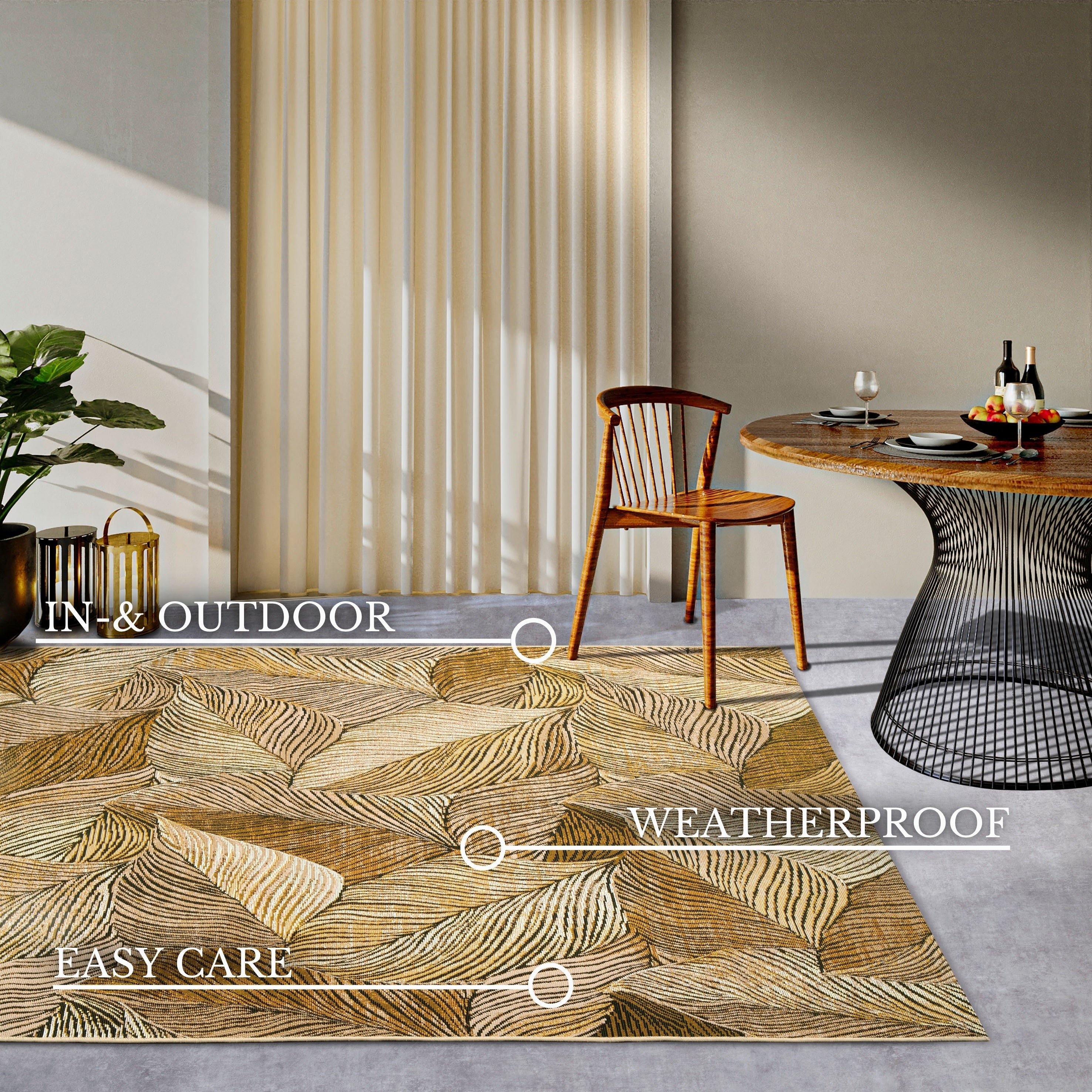 Dette alsidige tæppe er en sand allrounder. Det er lige så velegnet til at skabe et blikfang i stuen som på terrassen. Den fladvævede konstruktion gør det ideelt til gulvvarme, mens den robuste og smudsafvisende overflade sikrer nem rengøring. Tæppet er desuden UV-bestandigt og vejrbestandigt, så du kan nyde dets skønhed sæson efter sæson. Den latexbagside giver et stabilt underlag, mens den chained kantafslutning sikrer en elegant finish og lang holdbarhed.