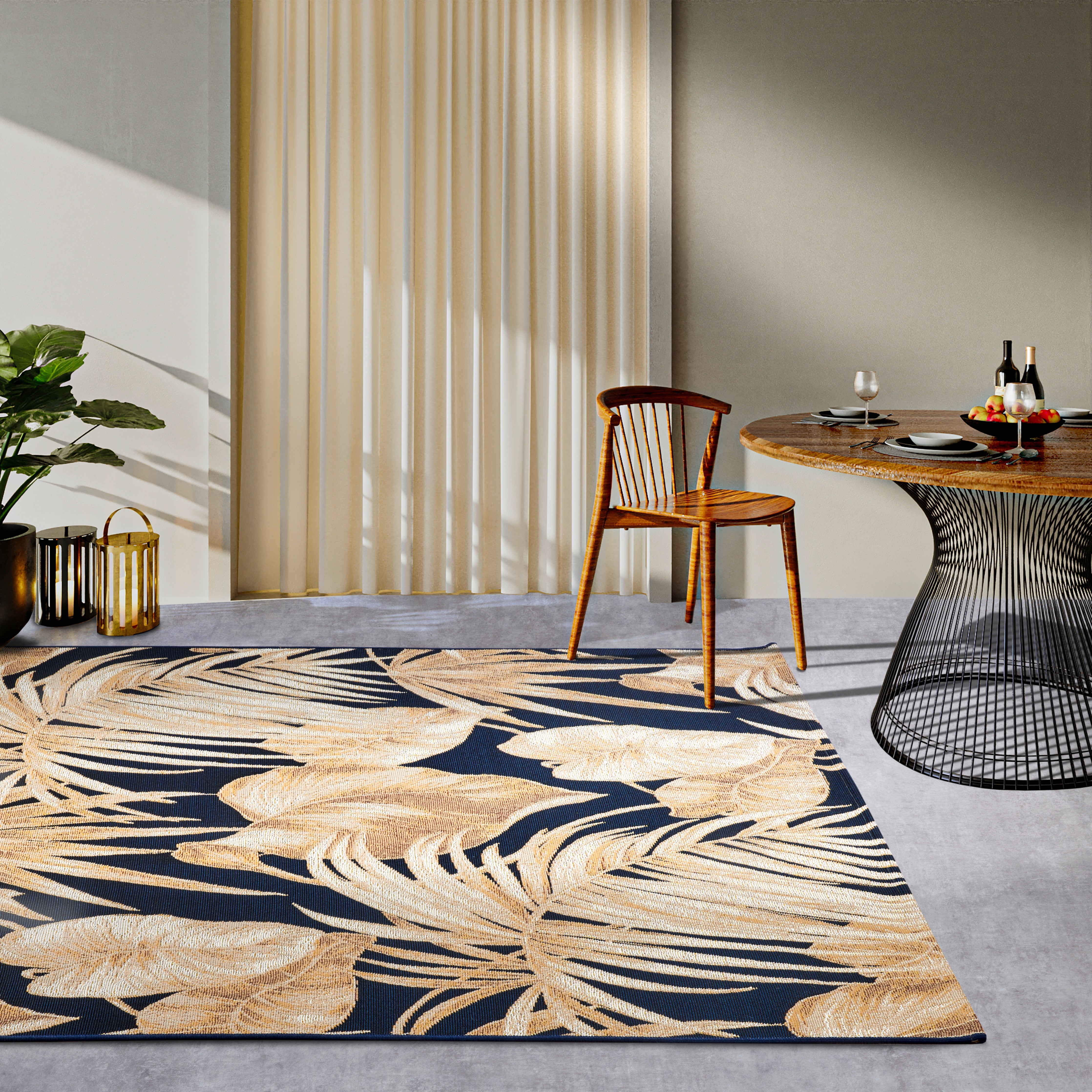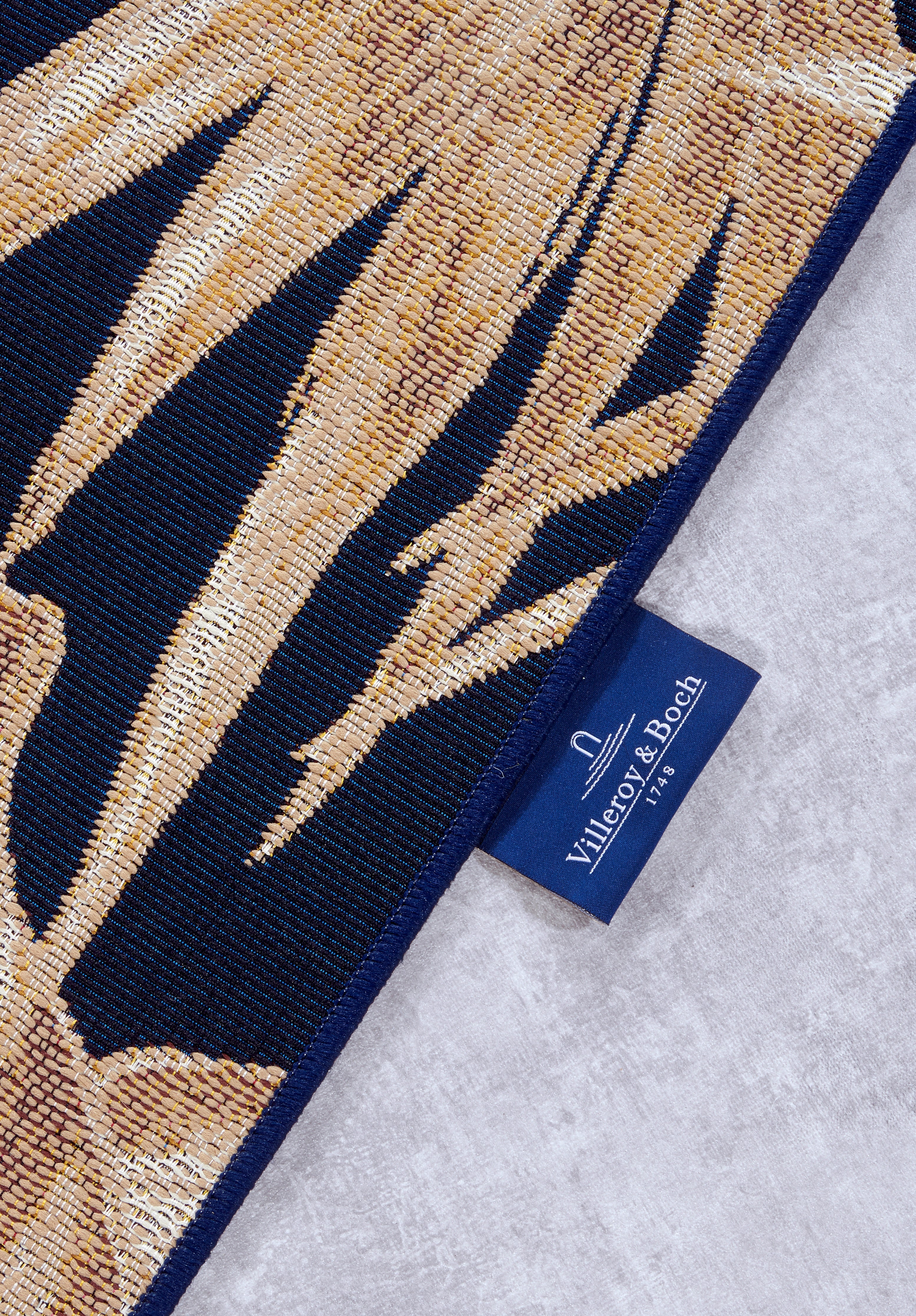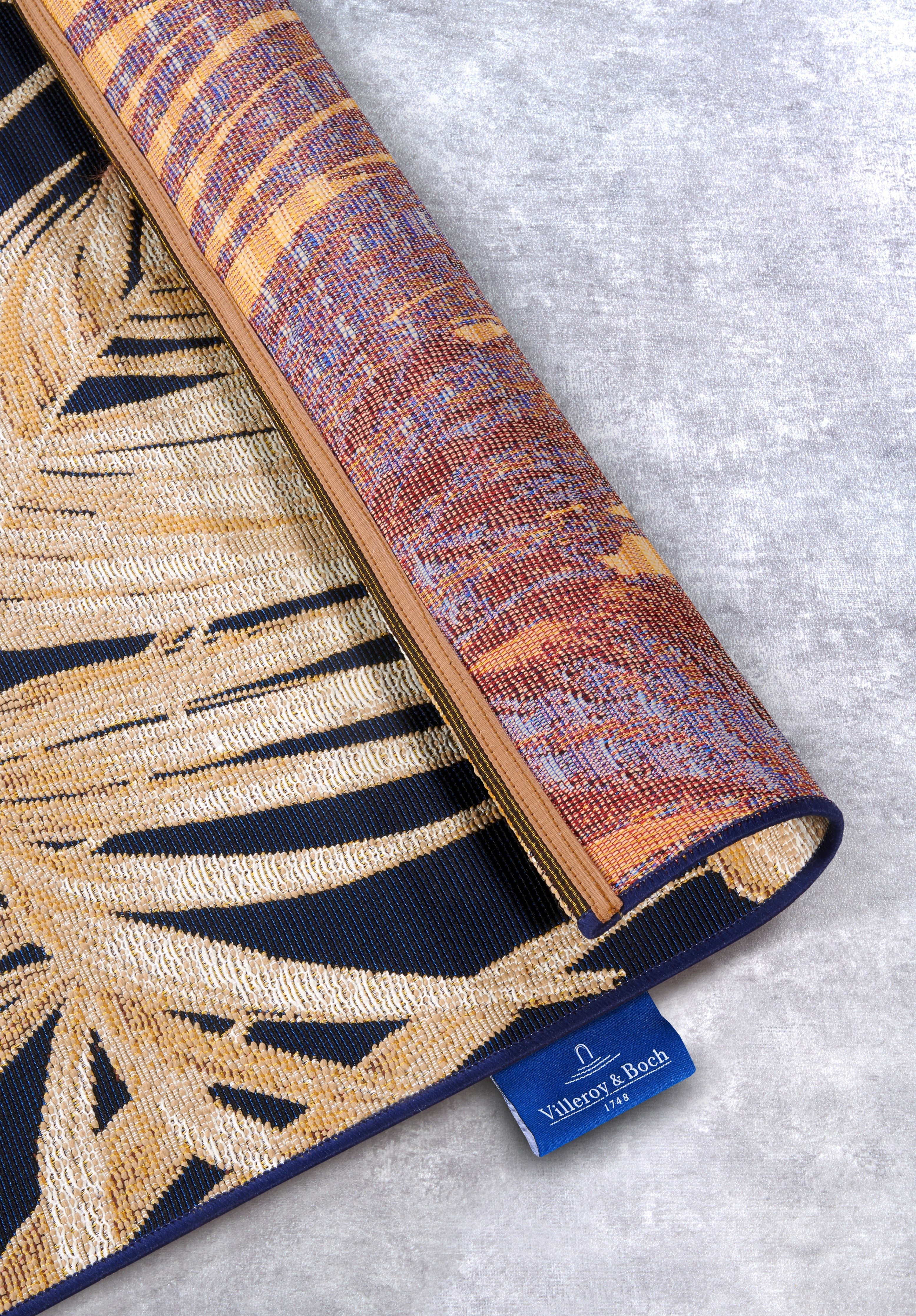 Forkæl dit hjem med et strejf af luksus og funktionalitet med Villeroy & Boch's elegante inde- og udendørstæppe fra Kollektion 1767. Dette smukke tæppe i en sofistikeret blå/guld farvekombination er fremstillet af en slidstærk blanding af polyester og BCF, der giver en blød og behagelig overflade.