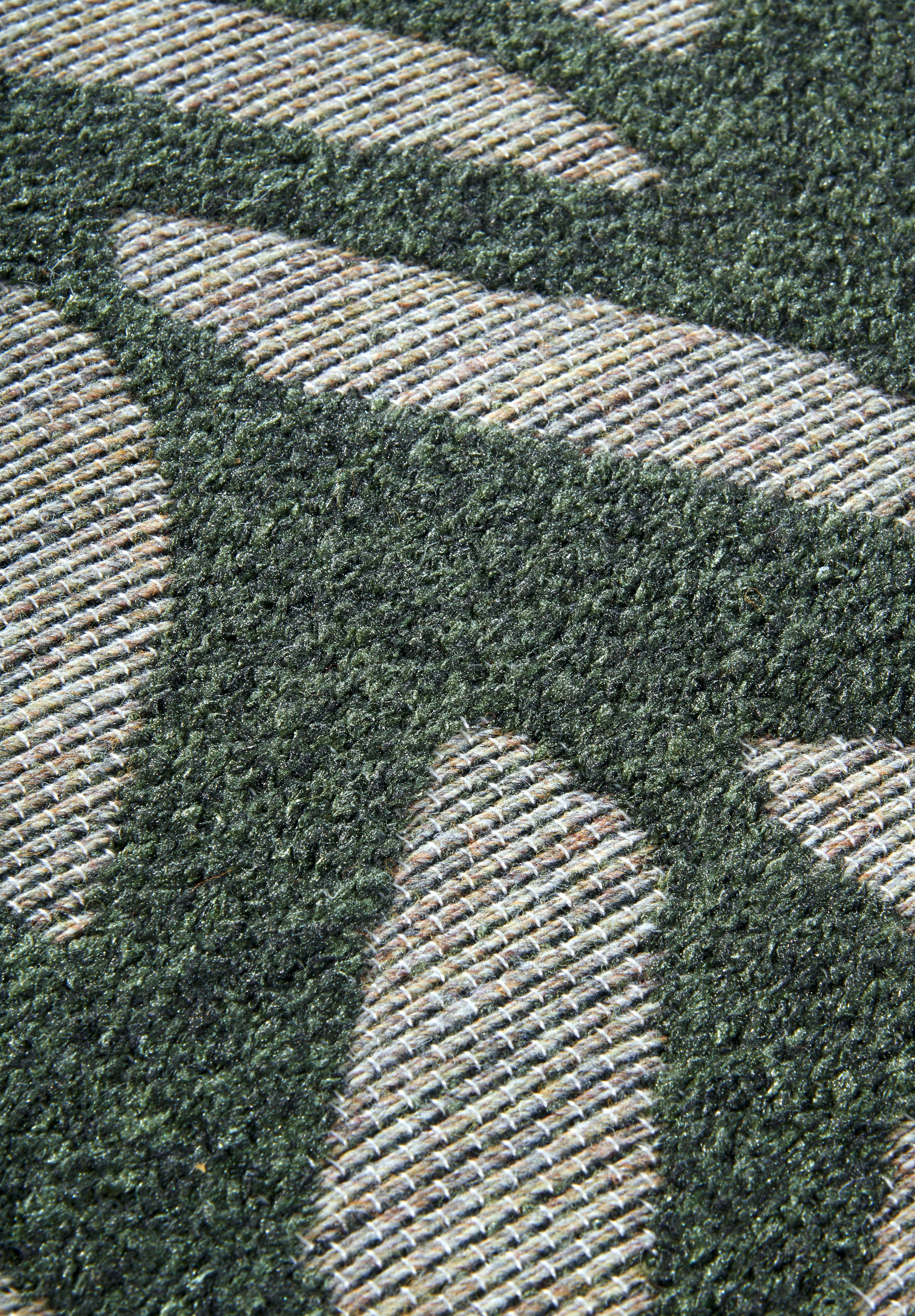 Tilføj et strejf af tidløs elegance til dit hjem med Villeroy & Boch - Inde&Udendørs Tæppe fra Kollektion 1883. Dette smukke grønne tæppe er fremstillet af 100% genanvendt polyester, hvilket giver det en blød struktur og et moderne geometrisk design, der vil fange blikket, uanset om det pryder din stue eller terrasse.