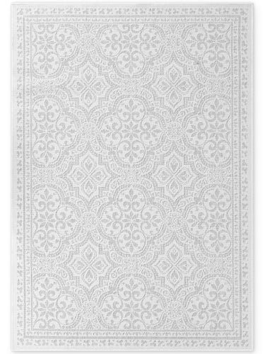Skab en let og luftig atmosfære i dit hjem med det stilfulde Inde&Udendørs Tæppe - Duet - 106251 i en elegant hvid/grå farvekombination. Dette alsidige tæppe er fremstillet af 100% polypropylen, et slidstærkt og let materiale, der er perfekt til både indendørs og udendørs brug.