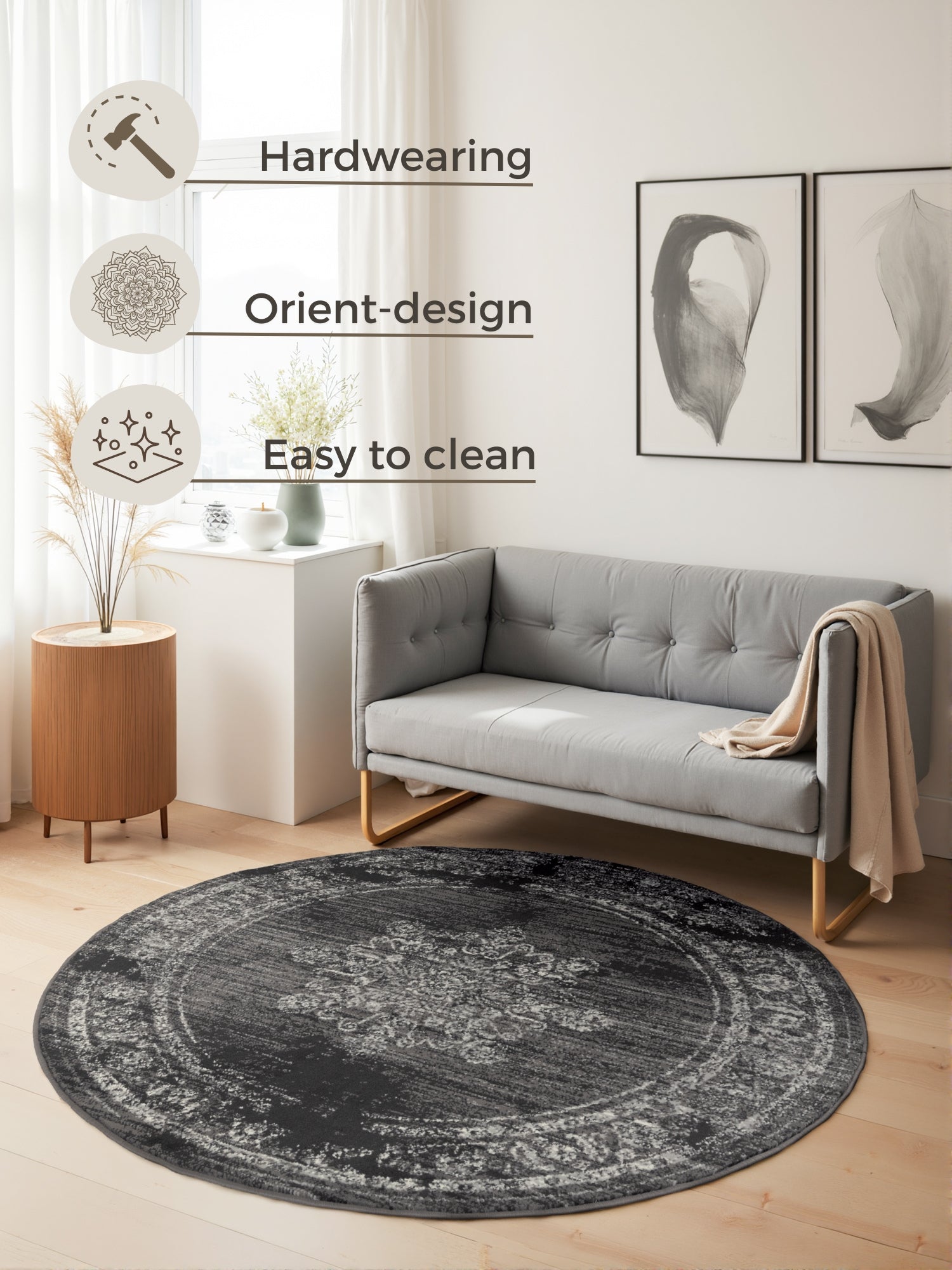 Tilføj et strejf af orientalsk elegance til dit hjem med Gloria-tæppet. Dette smukke, runde tæppe er fremstillet af 100% polypropylen, der giver en blød og behagelig overflade, samtidig med at det er utrolig slidstærkt og nemt at vedligeholde. Den grå farve giver en rolig og afbalanceret atmosfære, der passer perfekt ind i den moderne indretning.