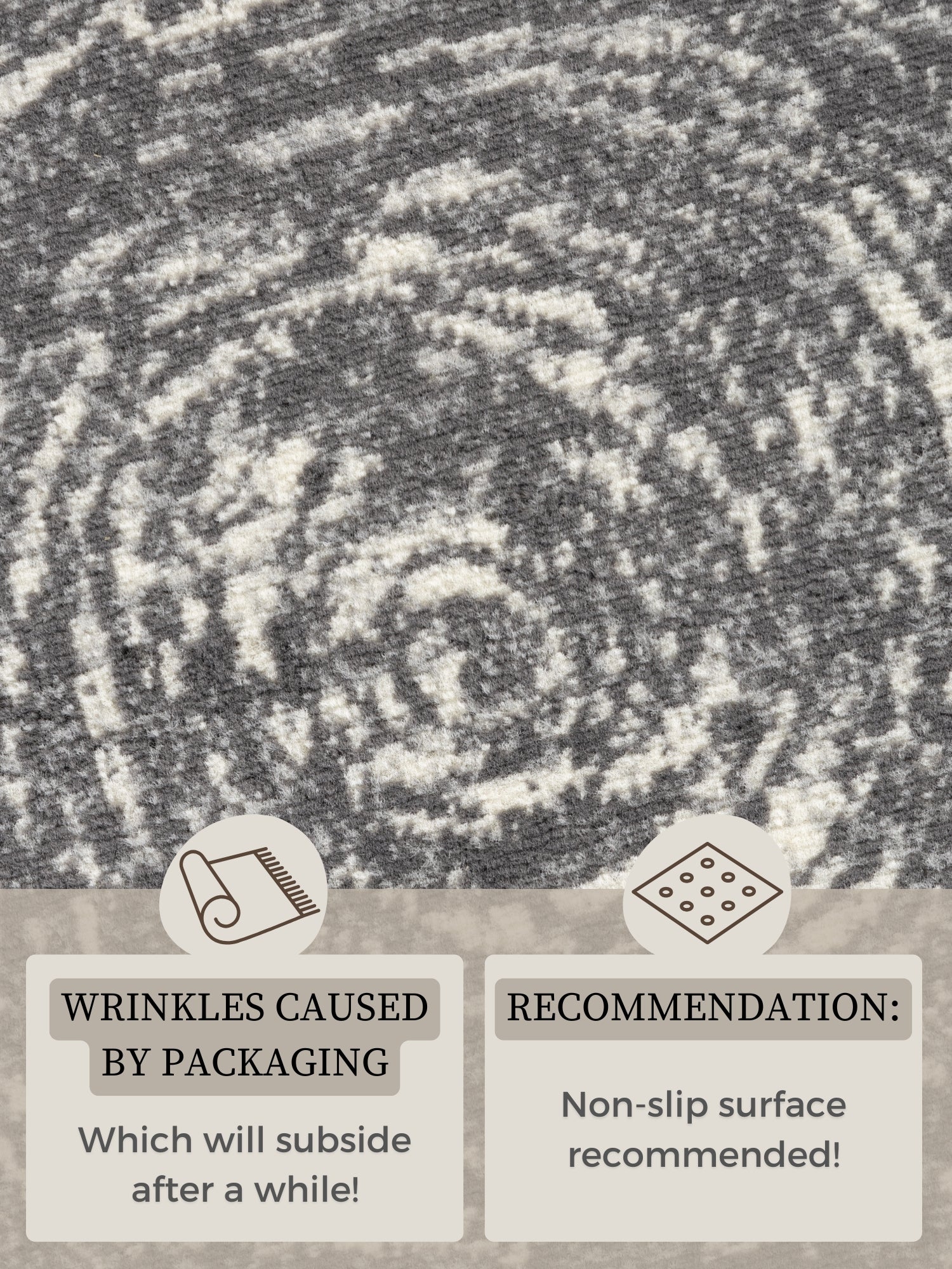 Tilføj et strejf af orientalsk elegance til dit hjem med Gloria-tæppet. Dette smukke, runde tæppe er fremstillet af 100% polypropylen, der giver en blød og behagelig overflade, samtidig med at det er utrolig slidstærkt og nemt at vedligeholde. Den grå farve giver en rolig og afbalanceret atmosfære, der passer perfekt ind i den moderne indretning.