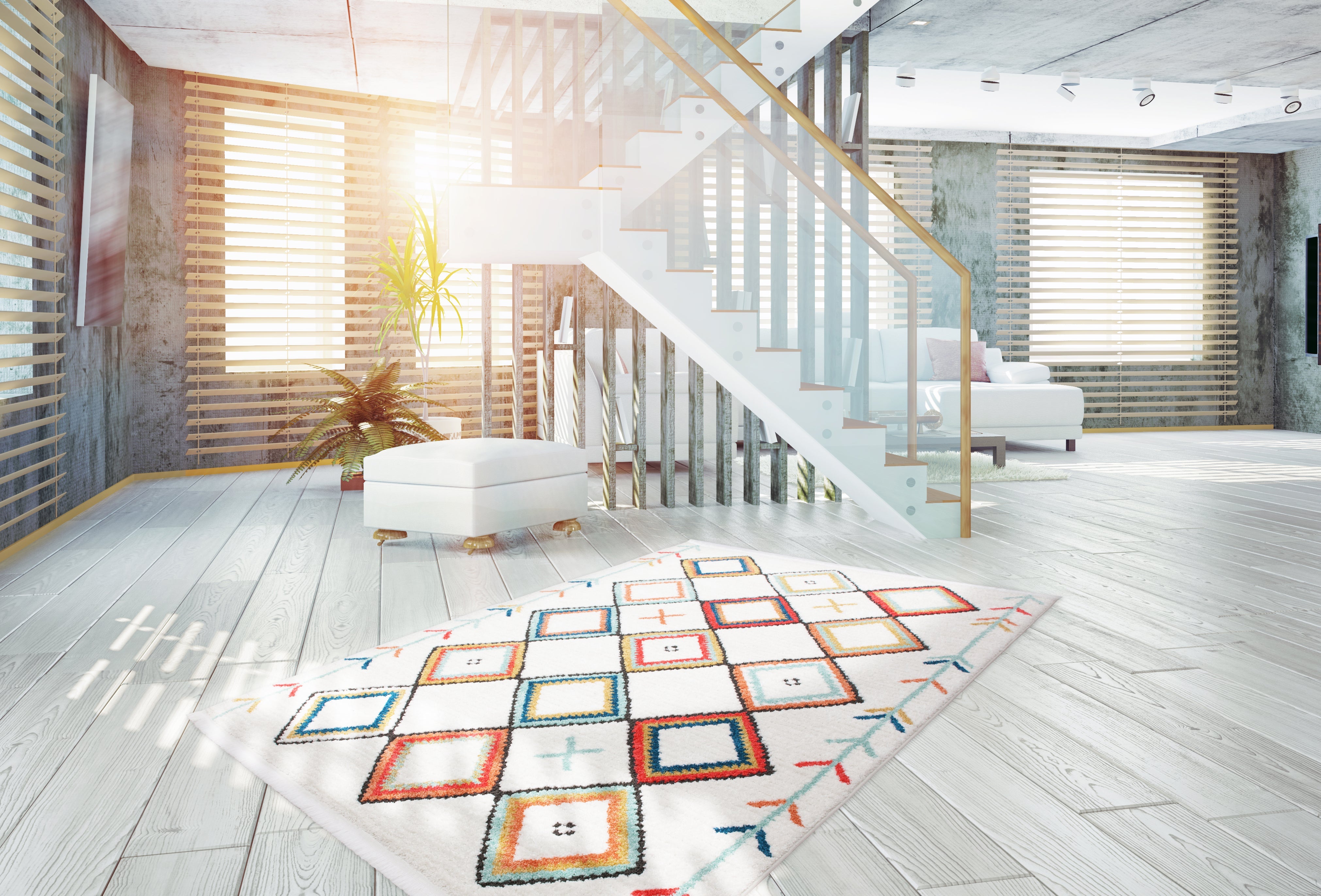 Dette tæppe er et absolut blikfang. Med sit trendy design ser dette tæppe godt ud i ethvert opholdsrum. Det er ikke kun lyst, moderne og friskt, men også holdbart og nemt at vedligeholde takket være blandingen af polypropylen og polyester. Dette gør det ideelt til gulvbelægning i rum, der bruges ofte. Dekorer din stue, dit soveværelse eller din entré med dette nye kortluvede tæppe, og vælg den rigtige størrelse til dig blandt en række forskellige muligheder.