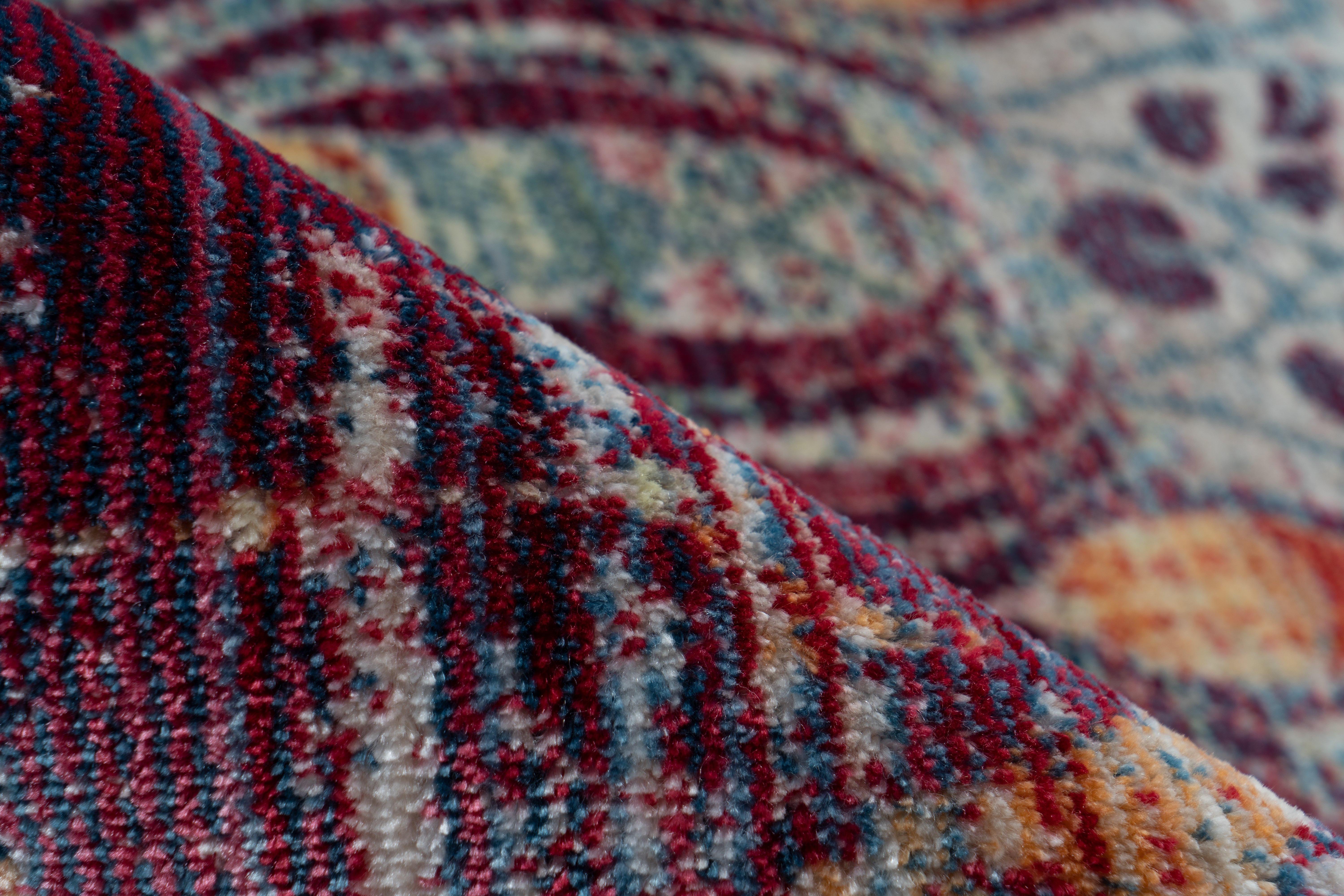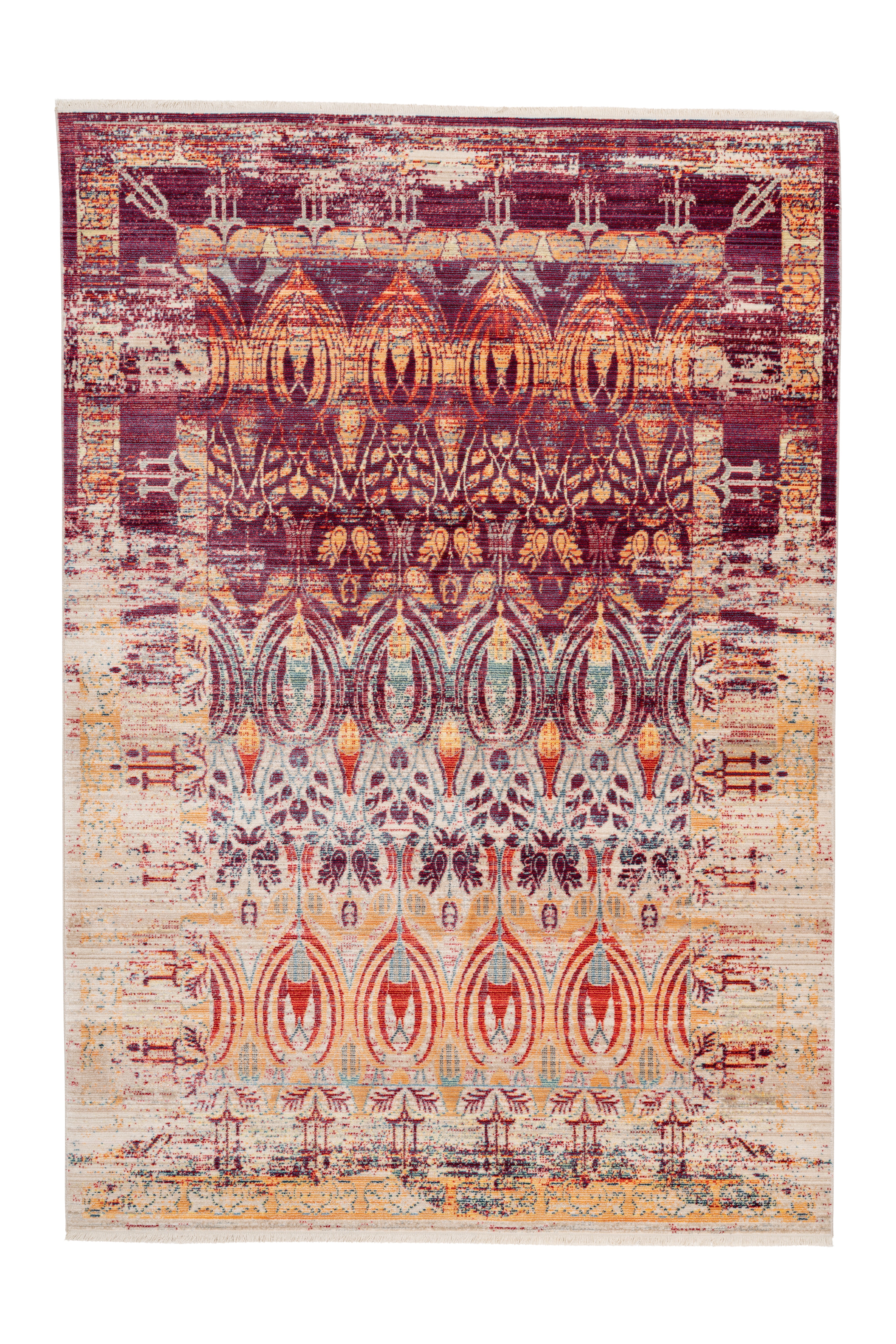 Fordyb dig i ren hygge med vores bløde frynsede tæppe i vintagestil. Dets stilfulde design med karakteristiske udvaskede elementer og orientalsk inspirerede mønstre giver ethvert rum en tidløs elegance. De bløde frynser i enderne skaber en varm atmosfære og gør det til et blikfang i ethvert opholdsområde. Dette tæppe er perfekt til vintage- eller retro-indretning og kan nemt integreres i en række forskellige indretningsstile. Sideoverlock giver ikke kun en smuk finish til luven, men forhindrer også flosning, mens bomuldsbagsiden giver ekstra stabilitet. Nyd den luksuriøse komfort ved dette tæppe, som takket være dets plejevenlige egenskaber er ideelt til områder med høj trafik som spisestuen eller gangen og endda nemt tåler gulvvarme.