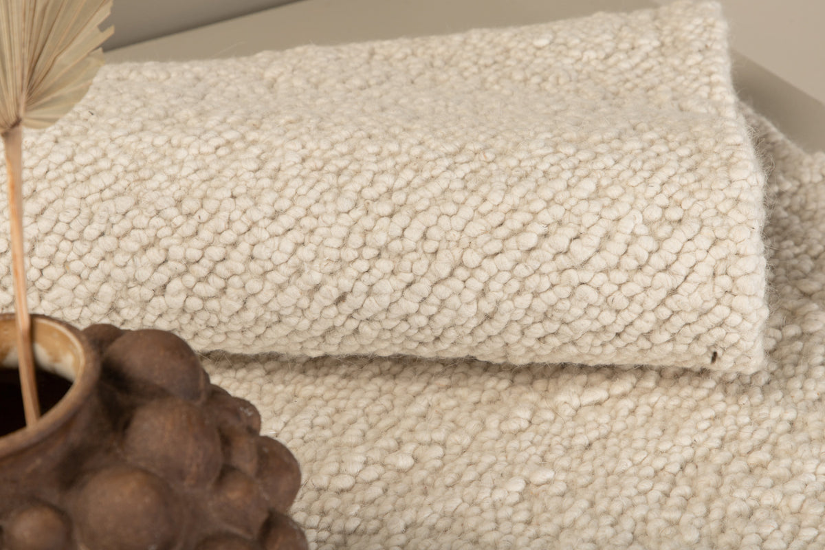 Skab et blikfang, der imponerer og indretter din stue hyggeligt med et eksklusivt uldtæppe! Betina tæppeserien byder på håndvævede uldtæpper med en teknik, der giver tæppet en dejlig knudetekstur med stor komfort at gå på og kan findes i forskellige størrelser og farver - vælg det, der passer bedst til dit hjem! Denne rektangulære skønhed har et moderne design og indbydende funktioner. Den hvide farve giver varme til rummet og den råhvide frynserække på de korte sider bliver en lækker detalje. Materialet føles både luksuriøst og har flere attraktive egenskaber, der giver dig et trofast tæppe over tid. Forkæl fødderne og nyd et moderne blikfang i stuen! Tips til uldtæpper: Uld er et naturmateriale, der både er slidstærkt og smudsafvisende. Pletter på uldtæpper skal fjernes med det samme ved at bruge køkkenrulle eller en ren klud for at absorbere hurtigt. Hvis pletten allerede er suget ind i tæppet, kan en klud med varmt vand være en god løsning, hvis kun lunkent vand ikke er nok, kan der tilsættes en lille smule mildt rengøringsmiddel.