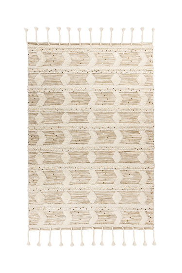 Dette uldtæppe bringer en følelse af ro, harmoni og frihed ind i dit hjem. Uanset om det kaldes boho, hippie eller etnisk, er dette tilbehør ikke bare et møbel, men en livsstil. Med sit charmerende udseende inviterer det dig til at blive hængende og legesyg drømme i løbet af dagen. Som en del af et harmonisk helhedsindtryk er der ingen grænser for kreativiteten. Det scorer også point med sin hyggelige fornemmelse, især når man går på det. Et absolut blikfang, der ved, hvordan man følger stilarter inden for indretning eller bevidst bryder dem. Tæppet er lavet af uld af høj kvalitet. Fremstillingsprocessen gør den utrolig nem at pleje og holdbar. Regelmæssig børstning sikrer langvarig nydelse af de fremhævede teksturer, der definerer dens karakter. Takket være bomuldsbagsiden er skridsikkerhed og lydisolering yderligere egenskaber. Det kan bruges på varme gulve uden problemer. Udvalget strækker sig over forskellige størrelser og mønstre. På grund af varierende lysforhold og naturlige egenskaber kan farverne variere fra billederne.
