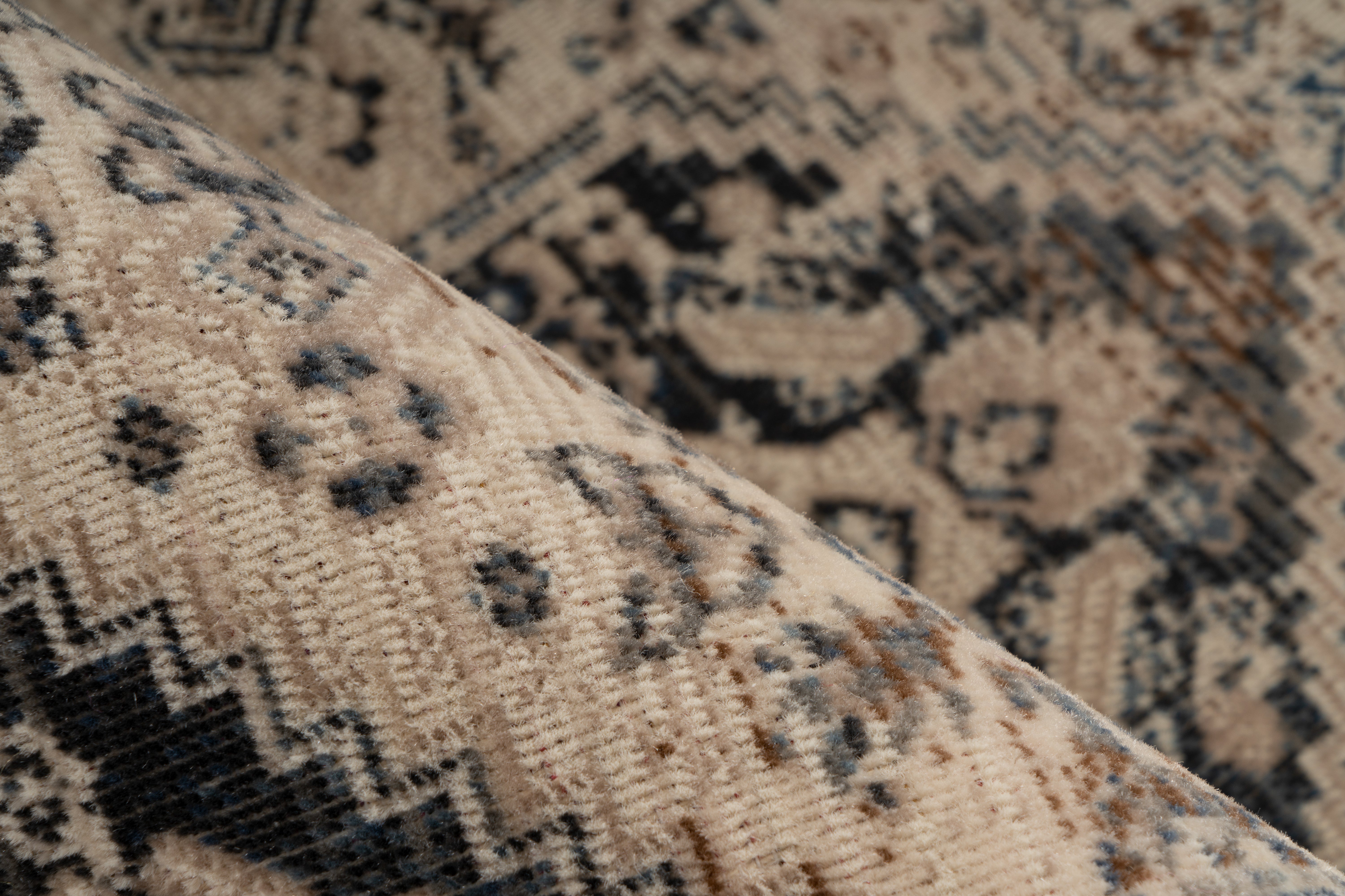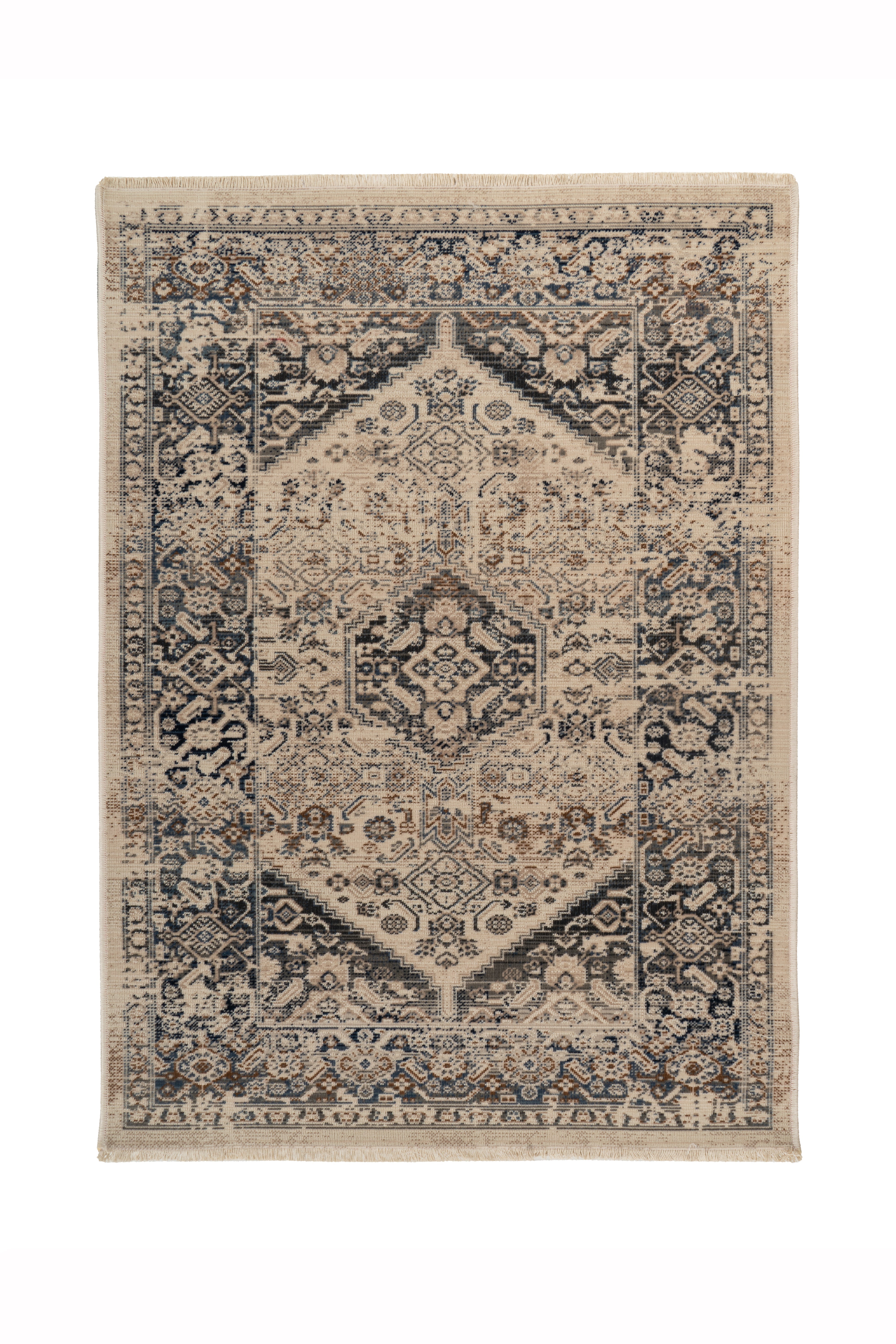 Dette stilfulde tæppe med et slidt look fås i en række forskellige farver. Det maskinvævede tæppe er lavet af 100% polypropylen og er skridsikkert. Den lave tykkelse på kun 3,5 mm gør det særligt robust og nemt at vedligeholde – et slidstærkt tæppe til enhver lejlighed!