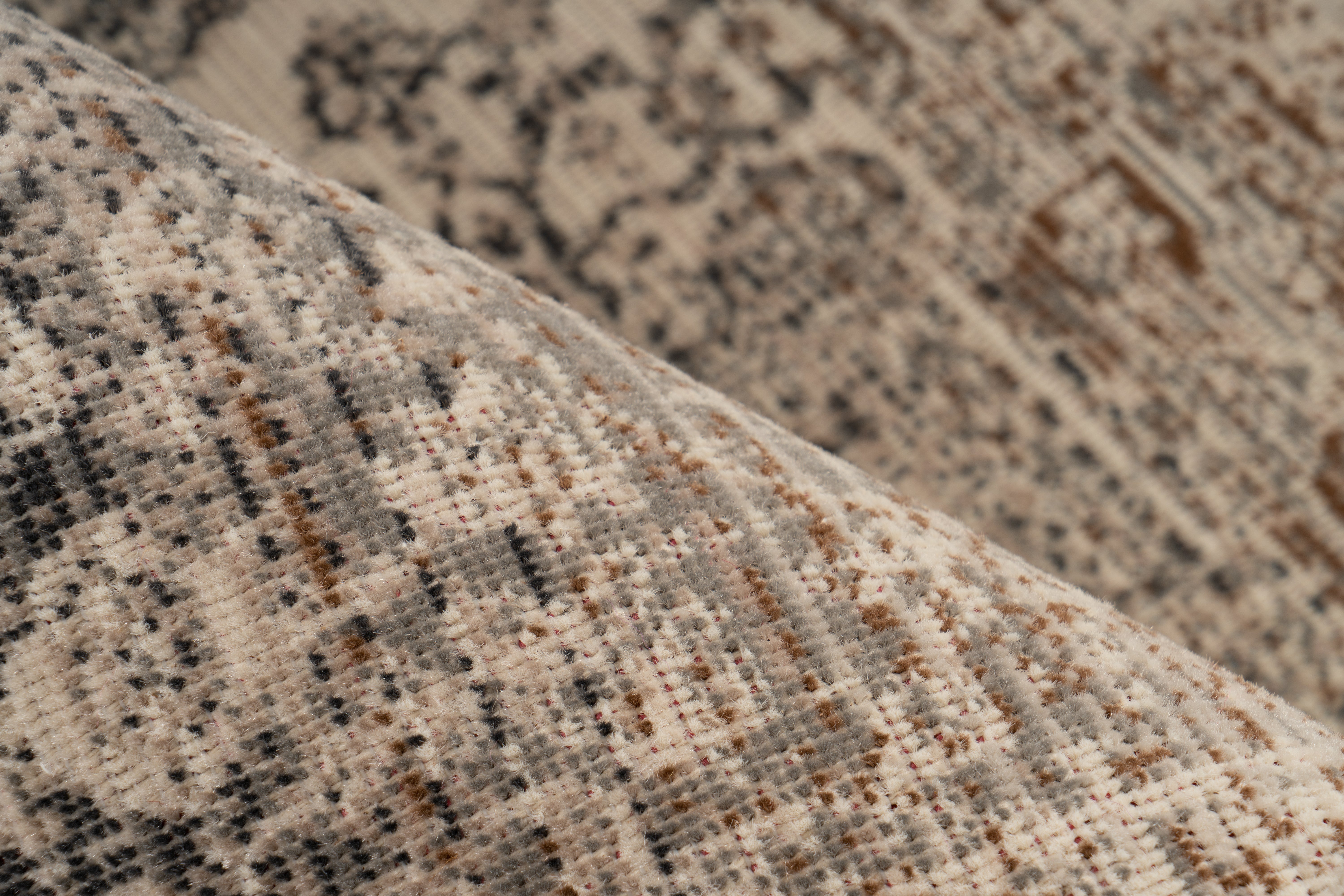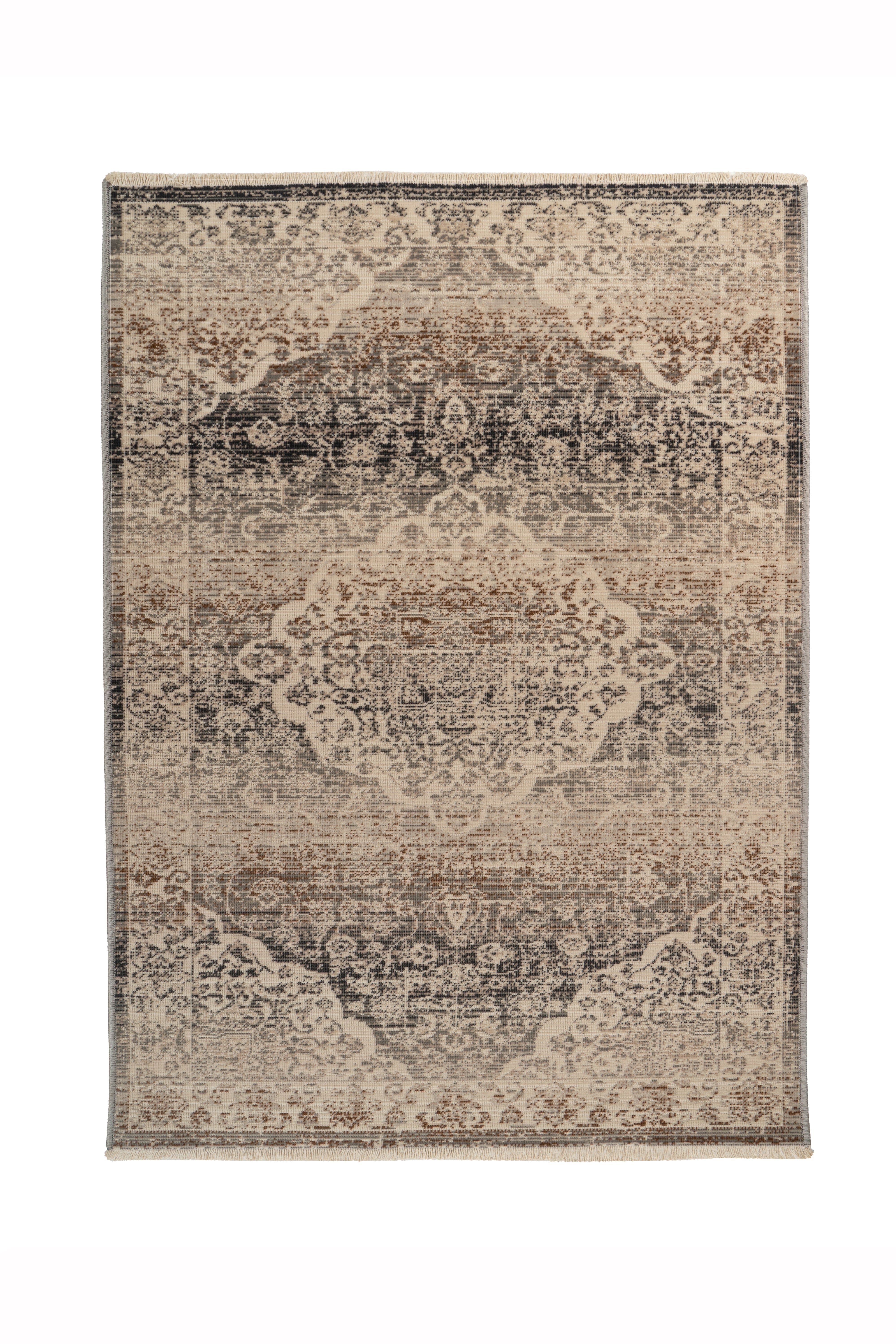 Dette stilfulde tæppe med et slidt look fås i en række forskellige farver. Det maskinvævede tæppe er lavet af 100% polypropylen og er skridsikkert. Den lave tykkelse på kun 3,5 mm gør det særligt robust og nemt at vedligeholde – et slidstærkt tæppe til enhver lejlighed!