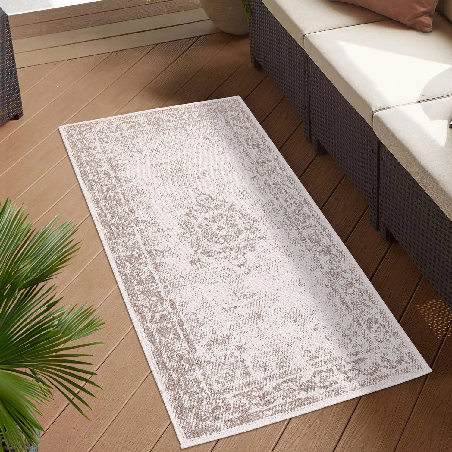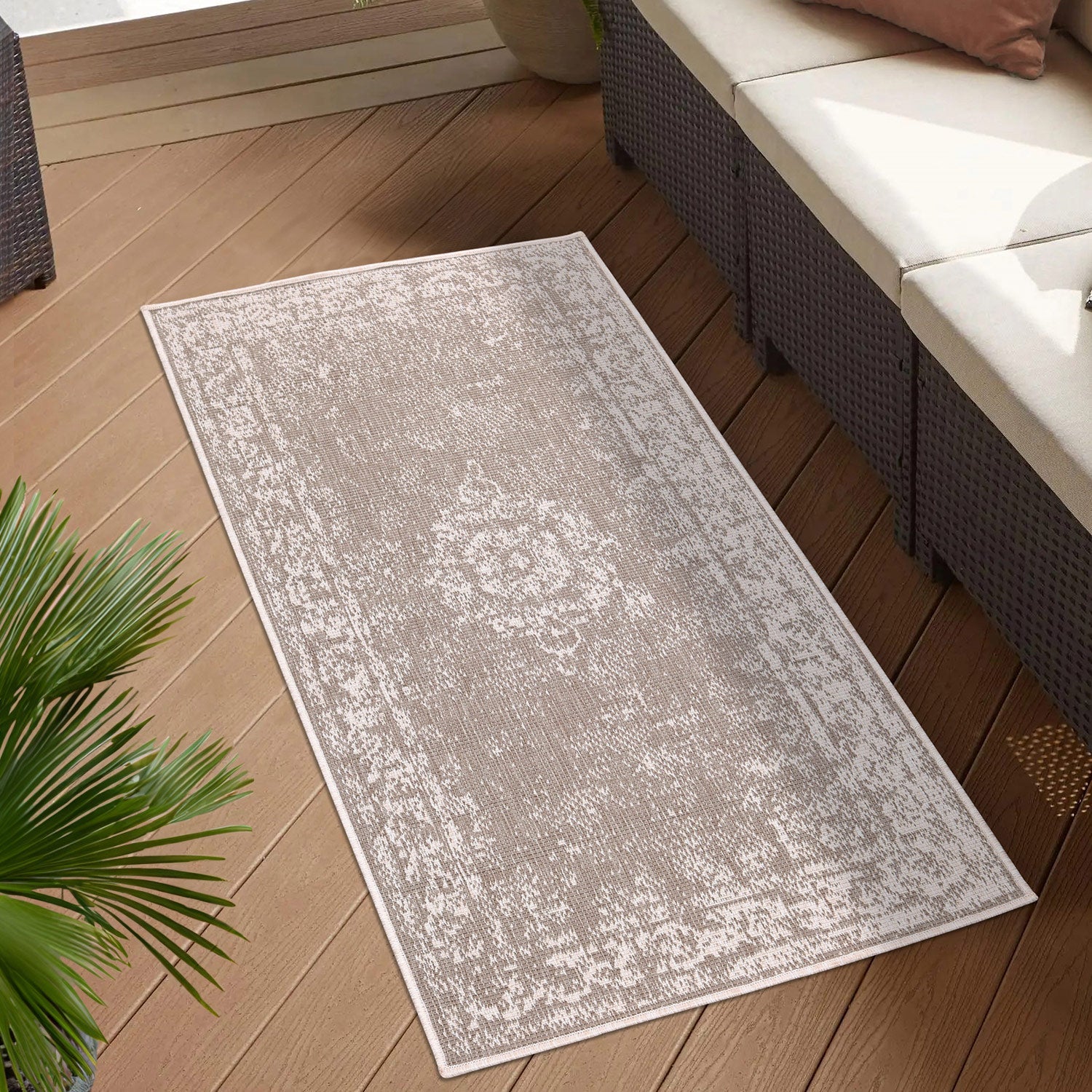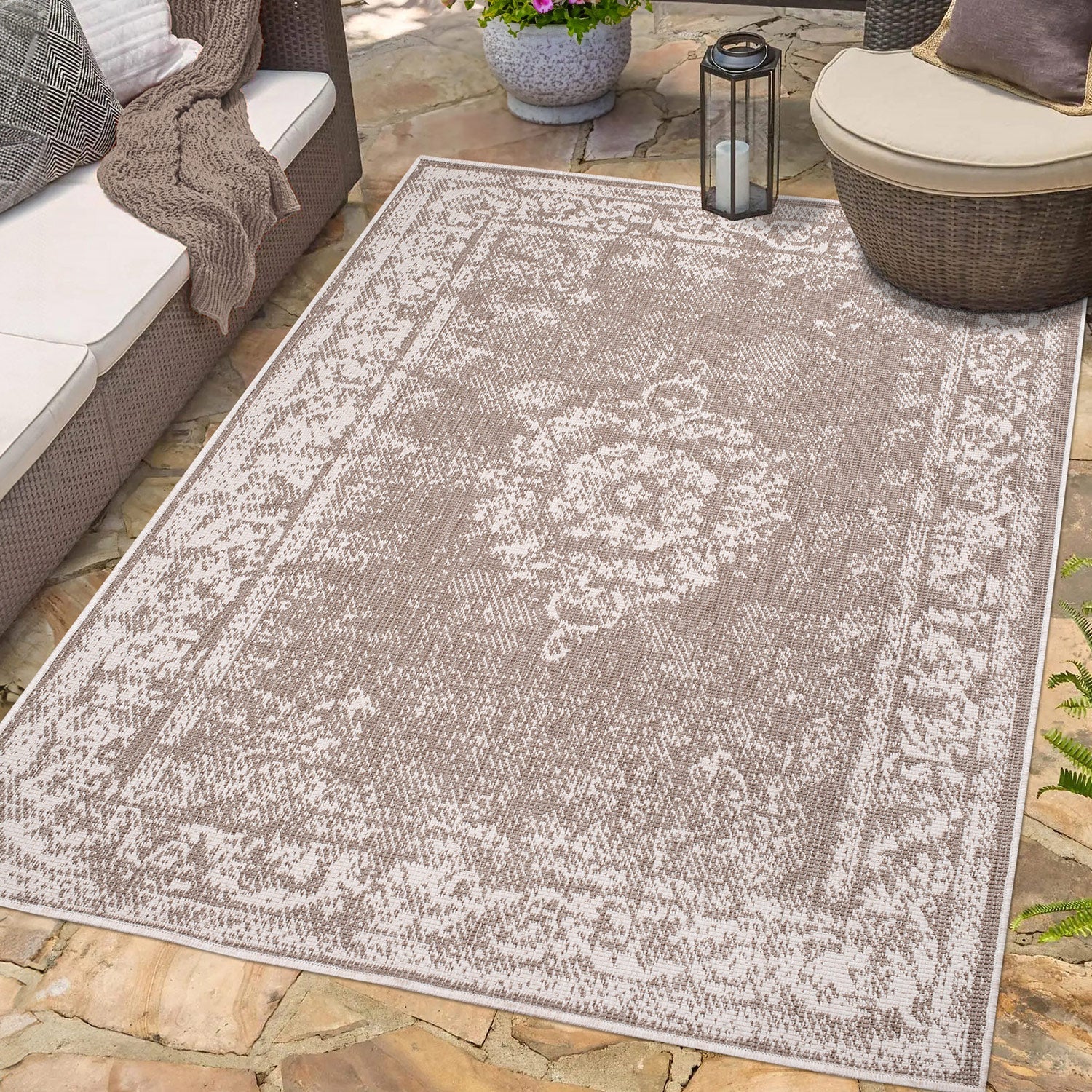 Vejrbestandigt vendbart tæppe til indendørs og udendørs brug
