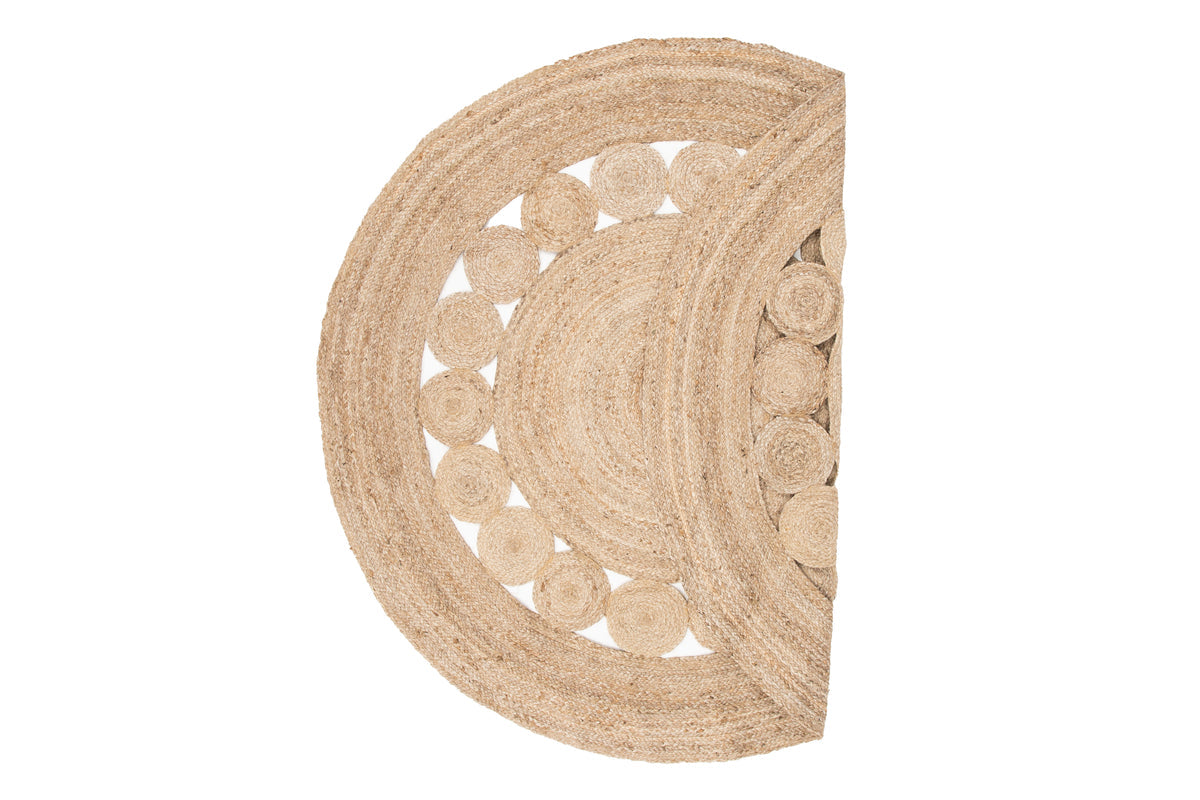 Indret dit hjem med en boheme-stemning og tag din indretning til næste niveau! Dette slidstærke tæppe fra Elis-serien er lavet af tidløst naturmateriale og har et charmerende rundt design med cirkulære detaljer i struktur og mønster. Det taknemmelige materiale gør, at tæppet passer lige så godt i køkkenet som i den større hall eller hvorfor ikke i udestuen eller orangeriet. Materialet har desuden naturlige farveskift, der giver liv til tæppet, er let at matche med andre møbler og skaber en hyggelig stemning i rummet. Tæppets mål: Ø200