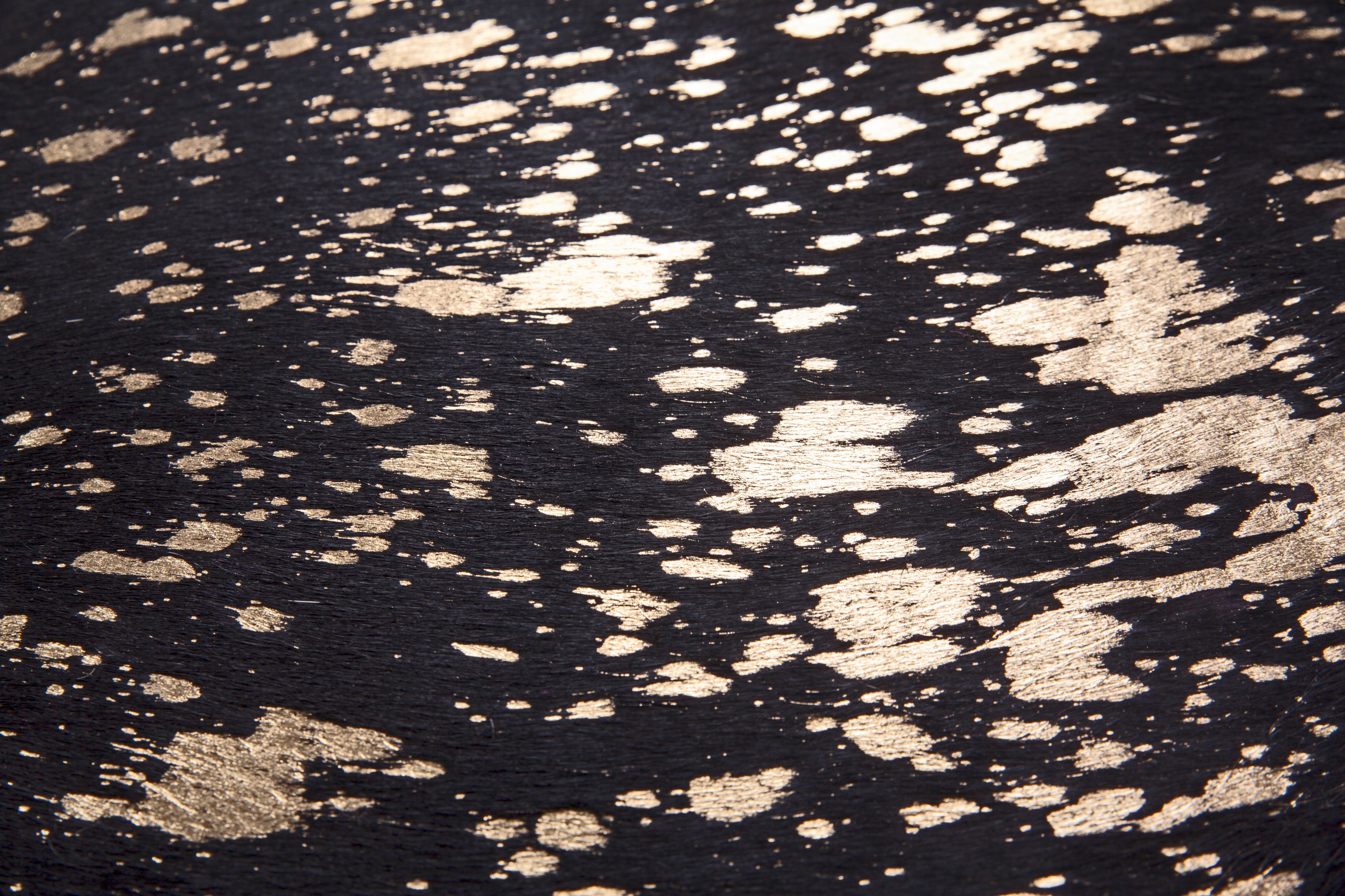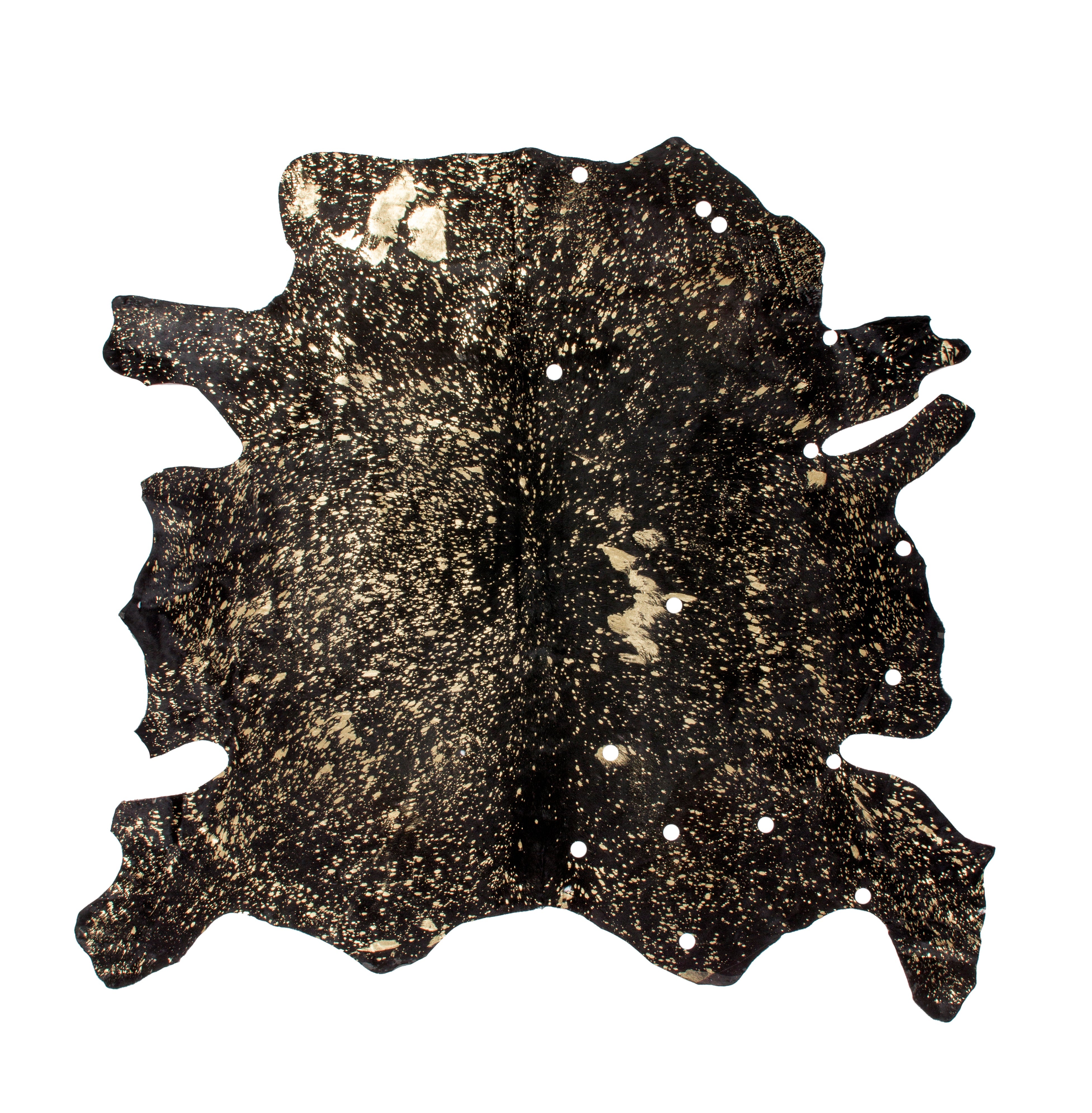 Designet på dette lædertæppe er kendetegnet ved ægte farvet læder, elegante guld- eller sølvdetaljer og en naturlig kontur. Attraktive udskæringer, der varierer i form og størrelse, giver tæppet et unikt udseende. Dette lædertæppe ser særligt iøjnefaldende ud i rum med minimalistiske, underspillede møbler og i kombination med træ eller andre naturlige materialer. De trykte folieelementer i guld eller sølv formidler luksus og elegance. Skab en hyggelig og sofistikeret atmosfære i dit hjem ved at bruge kohudstæppet som gulvbelægning, siddehynde eller vægophæng. Denne hyggelige gulvbelægning kan også bruges i rum med gulvvarme. Øg hyggefaktoren yderligere ved at placere puder, siddehynder og tæpper i nærheden af tæppet. Tæppet er lavet af 100% ægte kohud af høj kvalitet, er særligt nemt at pleje og kan nemt rengøres ved blot at støvsuge, banke eller tørre af med en fugtig klud. Dette lette, flade, attraktive lædertæppe beskytter dit gulv og tilføjer et sofistikeret touch til ethvert rum med sin eksklusivitet og naturlighed. Ægte kohud er et unikt stykke, så variationer i farve og tekstur kan forekomme. Dette gør hvert tæppe unikt, da ingen to skind er identiske. Naturskind kan fælde hår og plette en smule med tiden og ved kraftig brug. Metallfolien kan også skalle af nogle steder. Dette skyldes materialets naturlige natur og er ikke en fabrikationsfejl eller et kvalitetsproblem.
