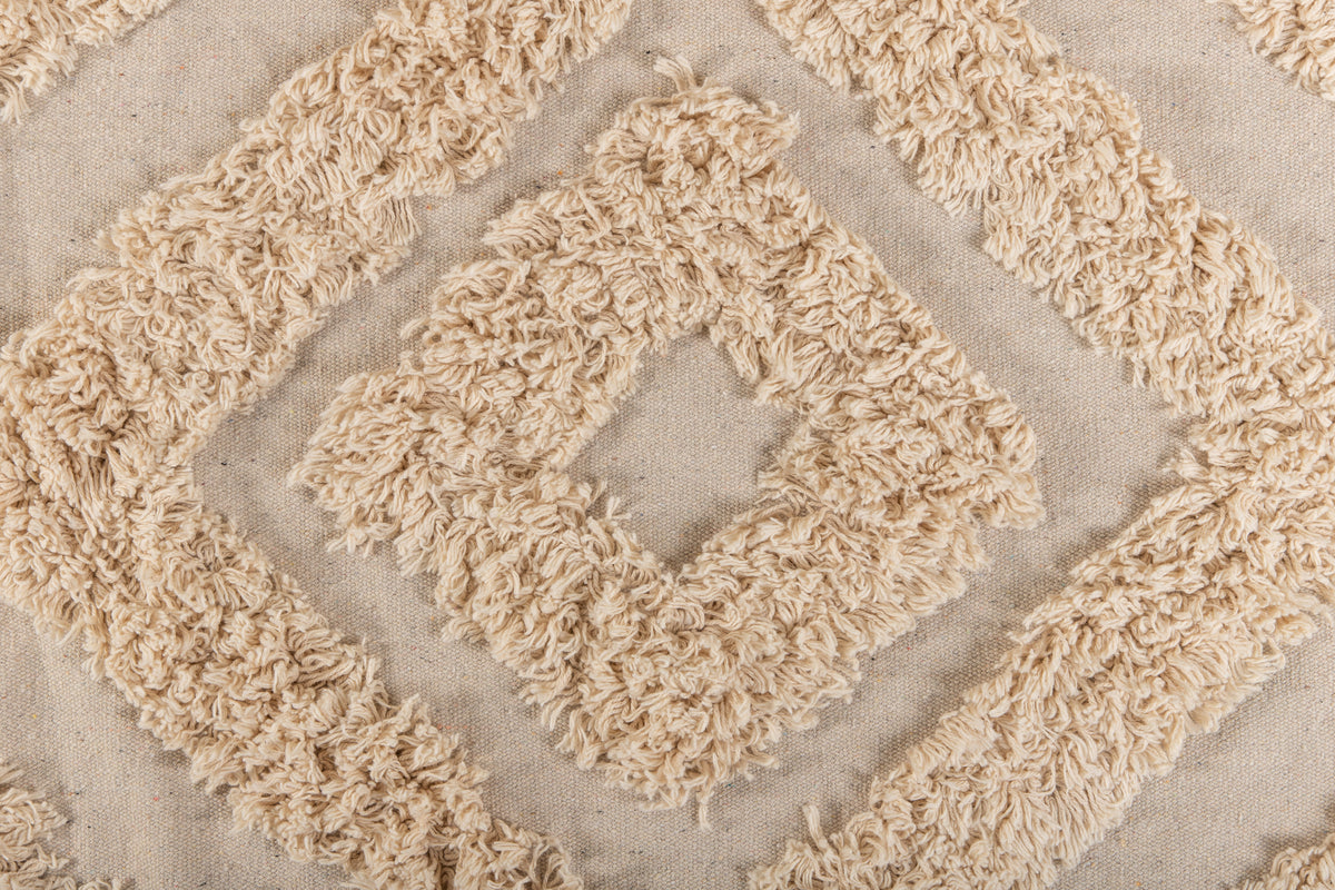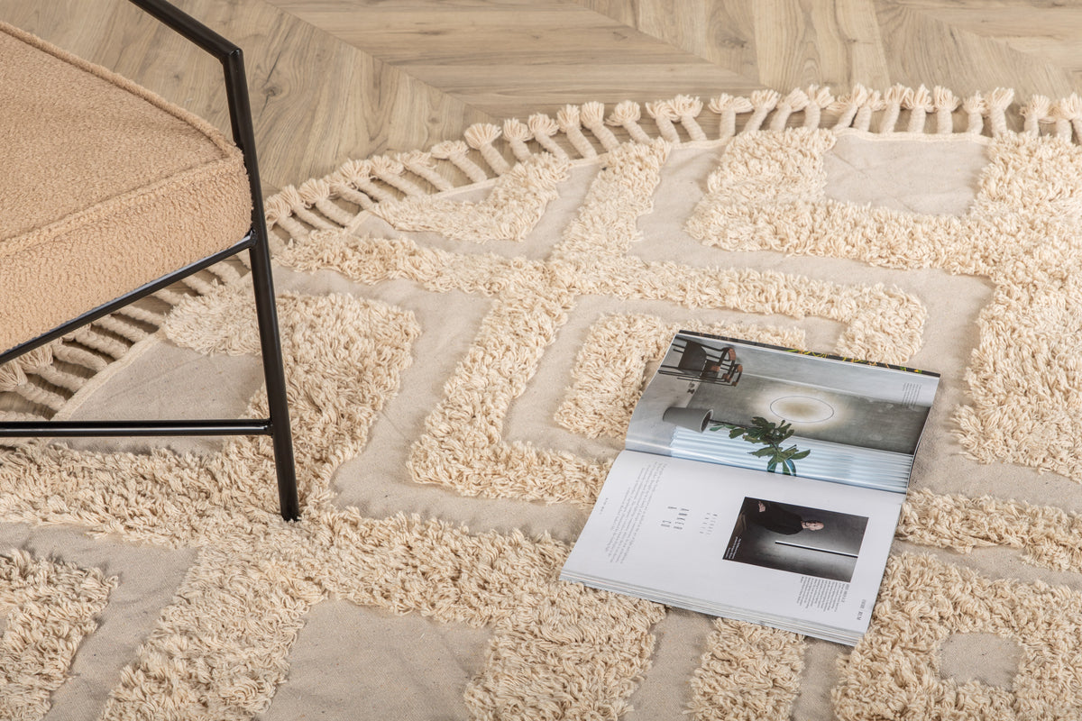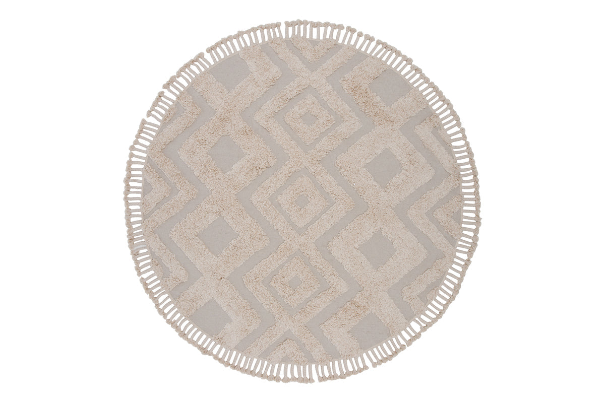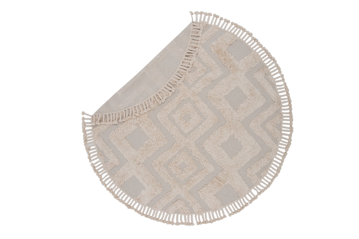 Smukt tæppe i et blødt bomulds materiale med frynser. Tæppet har et lineært dekorativt høj/lav mønster. Hilma er et klassisk tæppe, der passer ind i de fleste hjem. Tæppet fås i flere forskellige størrelser. Fx som rundt og som løber .