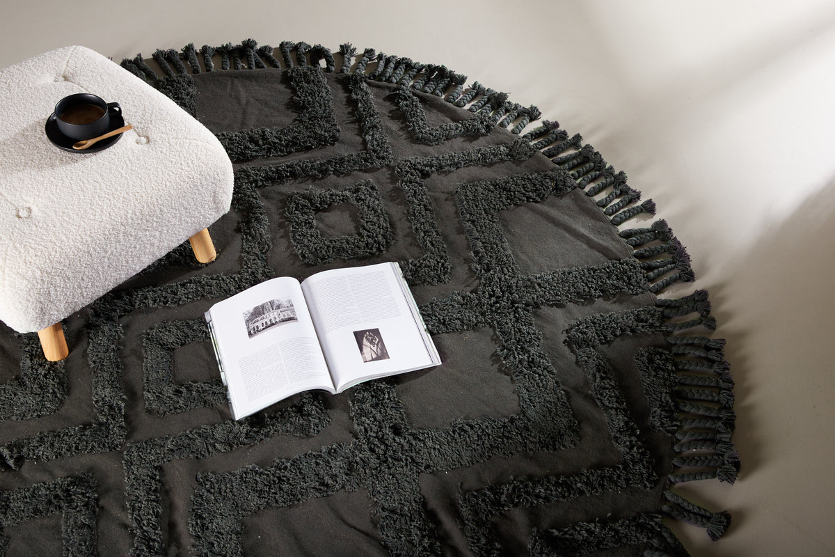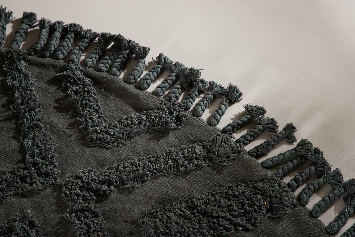 Smukt tæppe i et blødt bomulds materiale med frynser. Tæppet har et lineært dekorativt høj/lav mønster. Hilma er et klassisk tæppe, der passer ind i de fleste hjem. Tæppet fås i flere forskellige størrelser. Fx som rundt og som løber .