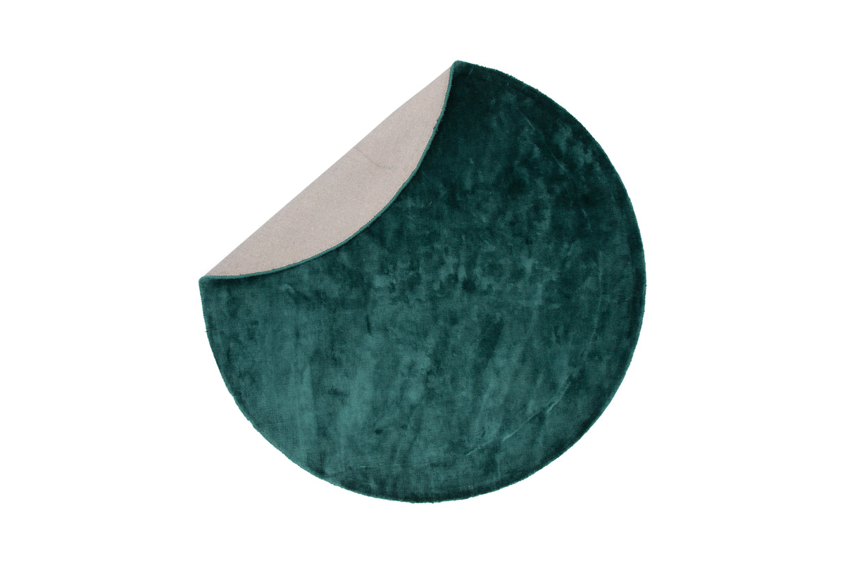 En grøn drøm i en trendy rund form og eksklusivt håndvævet materiale! Med tæppeserien Indra finder du flere forskellige viskosetæpper i forskellige farver og størrelser, lavet af viskose på toppen og bomuld nedenunder. Den lækre grønne farve skaber et behageligt blikfang og materialets glitrende egenskaber giver rummet en luksuriøs og silkeblød fornemmelse. Tæppets moderne runde form gør det nemt at placere og det passer lige så godt under sofabordet som i soveværelset - du bestemmer! Plejeråd: Regelmæssig og skånsom børstning og støvsugning er at foretrække for at mindske risikoen for, at støv og snavs sætter sig i fibrenes rødder. Viskosetæpper er kun egnet til indendørs brug, udsættelse for direkte sollys kan føre til misfarvning, så sørg for at vende tæppet regelmæssigt.