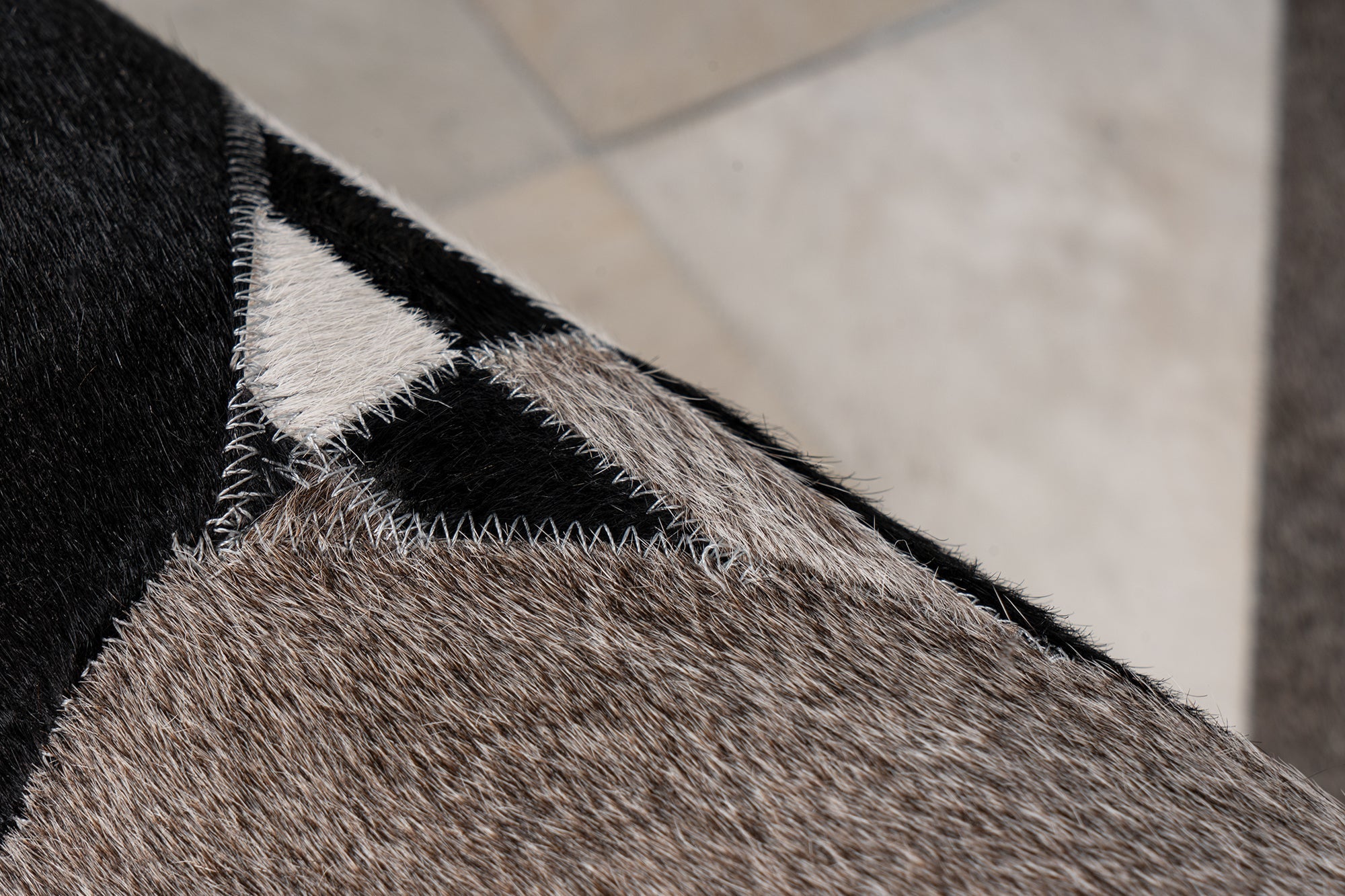 Med sit charmerende udseende forbedrer dette tæppe øjeblikkeligt interiører. De syede læderstykker skaber et unikt læderlook og skaber et enestående stykke. Det resulterende overordnede look er kendetegnet ved materialets varierende nuancer. Stilfuldt og diskret understreger hvert stykkes unikke karakter ejerens individualitet. Denne brugskunst har eksisteret siden oldtiden og dukker nu op igen i en moderne forklædning for at inspirere. Håndlavet af 100% ægte læder imponerer det naturlige materiale med sin holdbarhed. Et bredt udvalg af størrelser og mønstre opfylder også ethvert behov. Ud over lydisolering kan det bruges på gulvvarmesystemer. På grund af brugen af naturlige materialer kan farven variere fra billederne. Den naturlige hud kan fælde hår over tid og ved kraftig brug. Ligeledes kan den metalliske folie skalle af nogle steder. Dette skyldes materialets naturlige proces og er ikke en fabrikationsfejl eller kvalitetsfejl.
