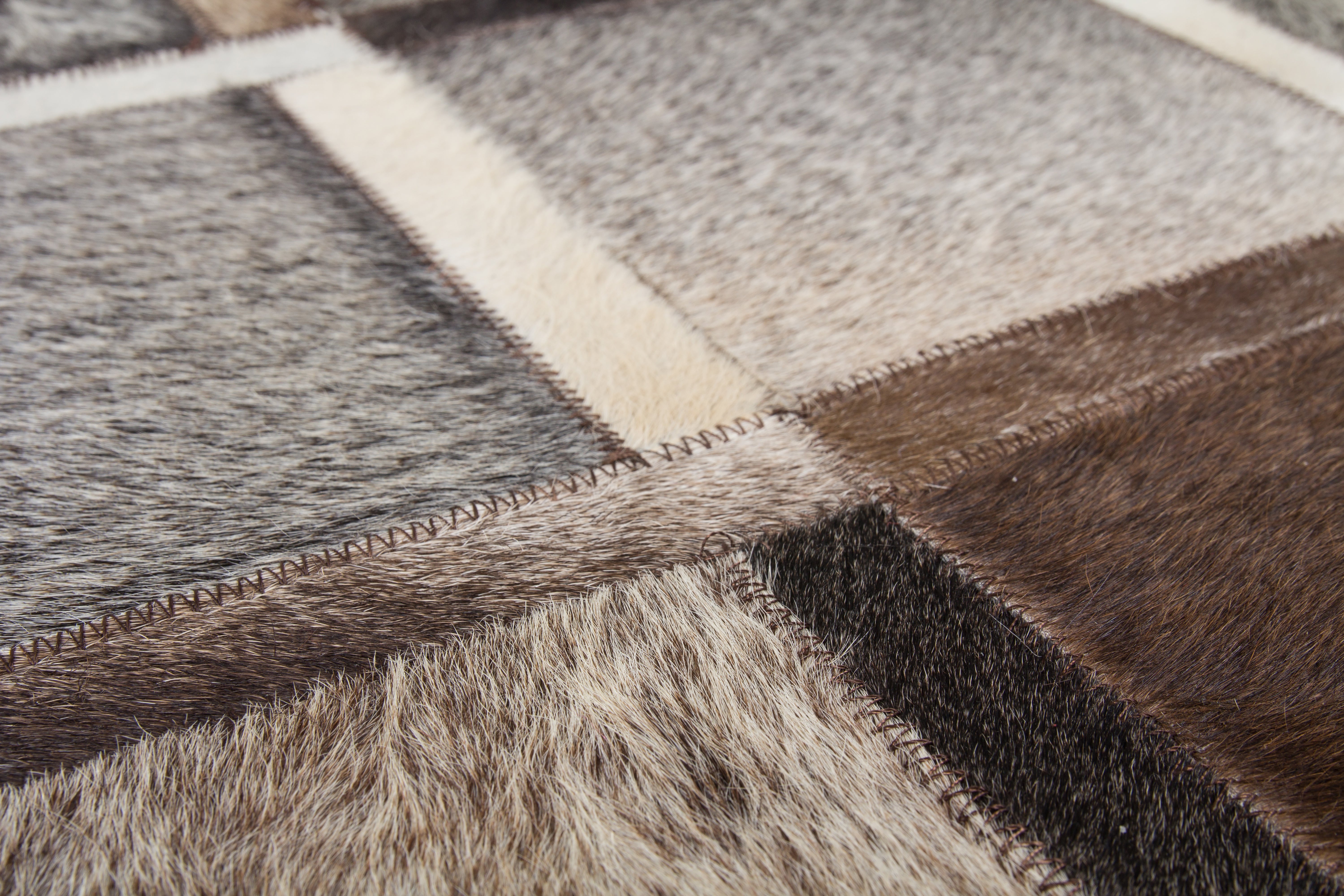 Dette smukke lædertæppe er et naturligt tæppe, der bringer noget helt særligt til dit hjem: en sofistikeret atmosfære med en unik stil. Diamantmønsteret eller patchworkmønsteret, lavet af forskellige naturlige hudtoner og smukke farveovergange, skaber et harmonisk helhedsindtryk. Dette håndlavede, unikke stykke er lavet af udvalgte materialer af fineste kvalitet. Naturlige ujævnheder på op til 30% i farve, struktur og størrelse understreger originaliteten og det unikke ved hvert lædertæppe. Den naturlige hud kan fælde hår over tid og ved kraftig brug. Dette skyldes produktets natur og er ikke en fabrikationsfejl. Tidløst og universelt anvendeligt, udstråler tæppet et yderst luksuriøst udseende og bliver, når det placeres korrekt, et blikfang – uanset om det er i stuen, gangen eller ethvert andet rum. Dette vidunderlige lædertæppe imponerer med sit høje håndværk og sin exceptionelle komfort. Det er et ekstravagant boligtekstil for dem med en stærk sans for stil og indretning. Selv under kraftig brug bevarer det naturlige materiale sin bløde fornemmelse, hvilket gør det ideelt til rum, der bruges ofte. Samtidig er det slidstærke og robuste tæppe lysægte og nemt at rengøre. Tæppets tunge vægt siger meget om dets høje kvalitet.