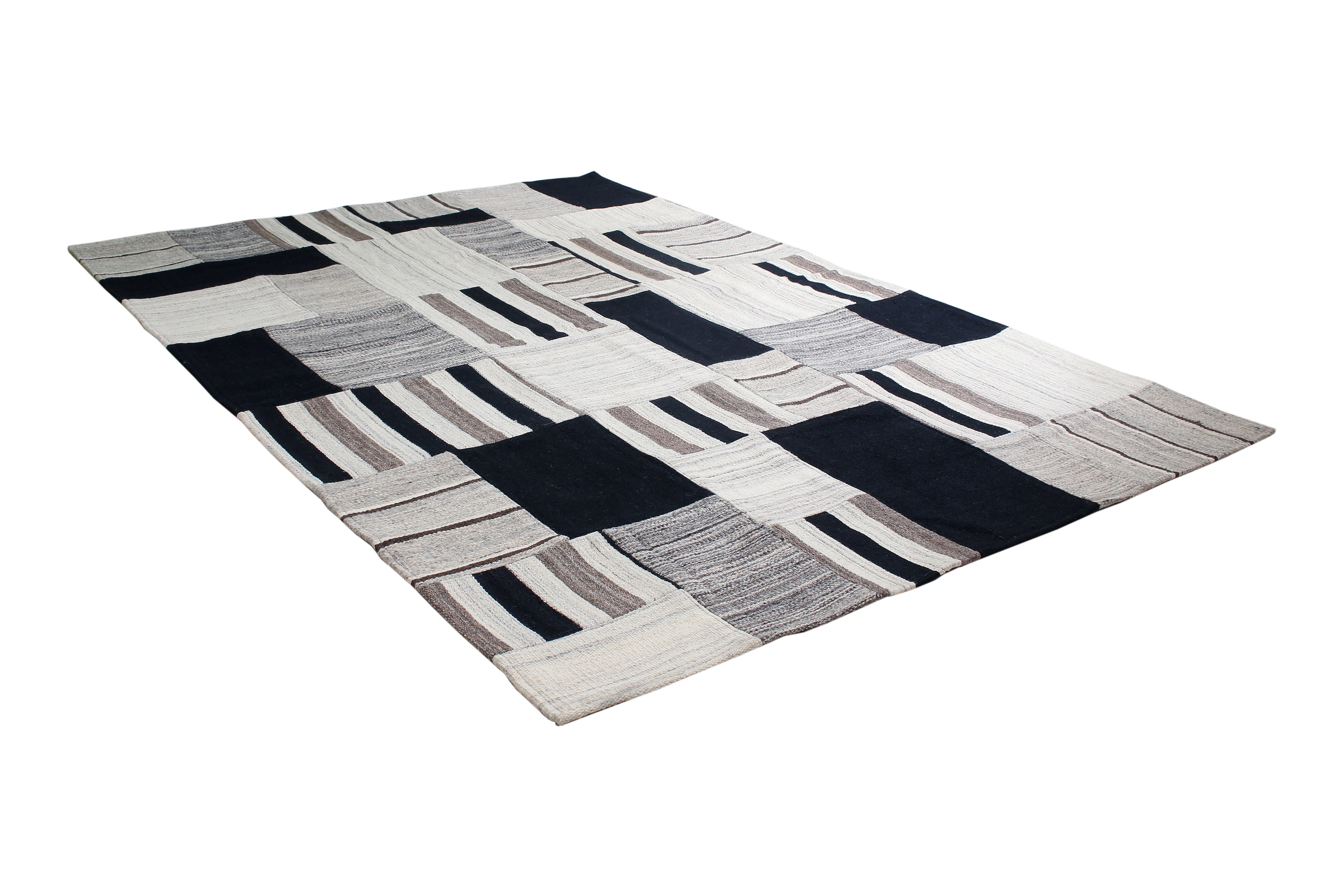 Det trendy patchwork-design gør dette håndlavede tæppe unikt. Ingen to jacquard-kelimer er ens. Den harmoniske farvekombination tilføjer dynamik til dit hjem og bliver hurtigt et smukt blikfang, uanset hvilket rum du vælger at bruge det naturlige tæppe i. Tæppet imponerer også med sin taktile fornemmelse. Kombinationen af uld og bomuld er meget slidstærk og derfor særlig nem at pleje og rengøre. Samtidig er tæppet smukt let, hvilket gør det nemt at forvandle et rum på et øjeblik. Tilføj et strejf af stil til dit hjem og komplementer din moderne eller klassiske indretning med dette tæppe. Den tætte luv af dette naturprodukt kærtegner dine fødder og skaber en behagelig opholdsoplevelse, samtidig med at den giver god isolering.