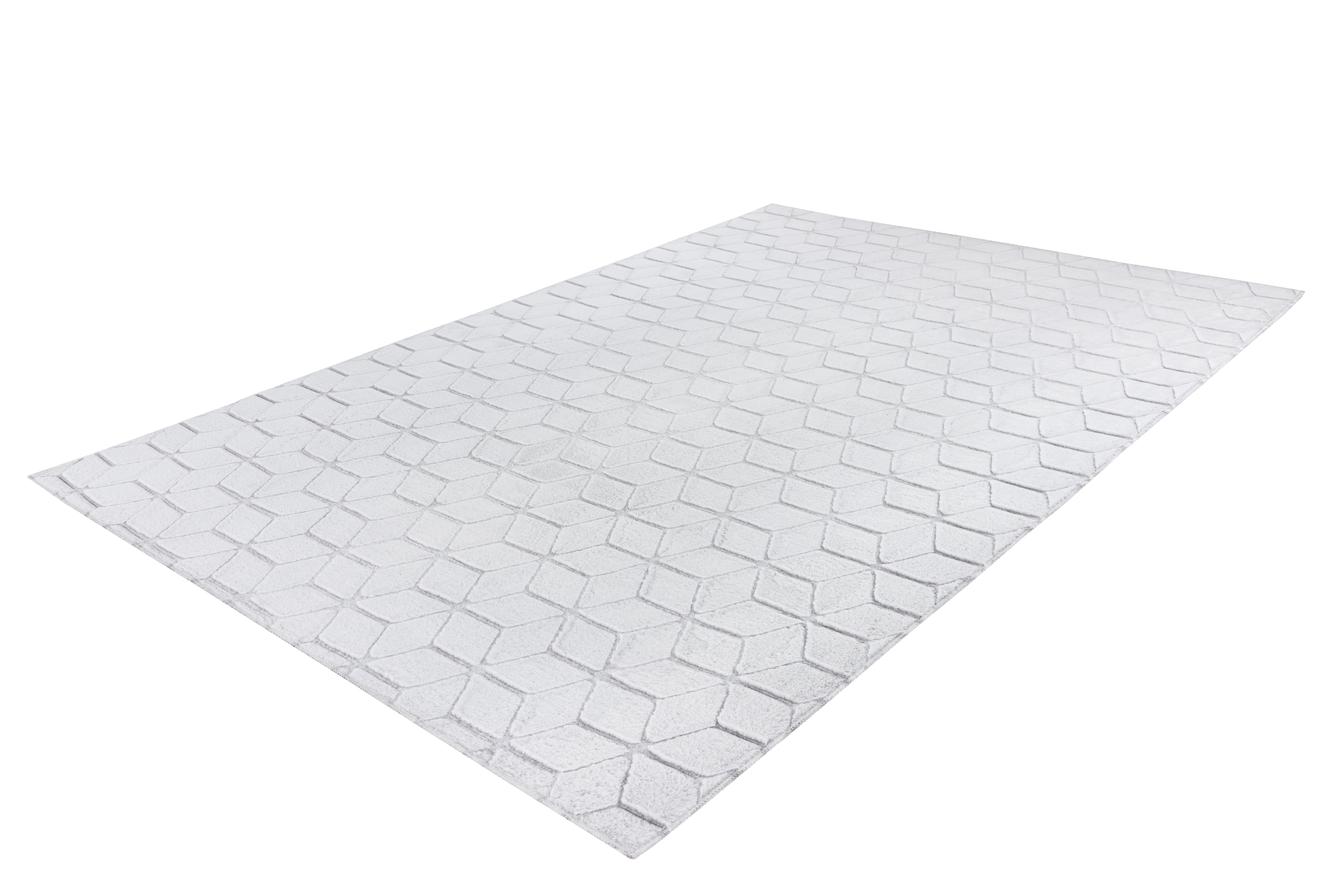 Tæppets udseende er kendetegnet ved dets attraktive prægede mønster, der skaber en slående 3D-effekt. Mønsterets geometriske former giver også tæppet et stilfuldt retro-look. Den ellers enkle, monokrome luv ser godt ud i ethvert opholdsrum og kan takket være sin underspillede elegance kombineres med enhver indretning. Den hyggelige overflade skaber en hyggelig atmosfære i rummet. Tæppet kan også nemt installeres i rum med gulvvarme. En bomuldsbagside og dekorative syninger hele vejen rundt forstærker luven. Samtidig forhindrer overlock-syningen tæppet i at flosse. Tæppets faktiske farve og mønster kan variere fra de viste billeder. Forskellige farvenuancer kan forekomme på grund af forskellig belysning og forskellige luvretninger.