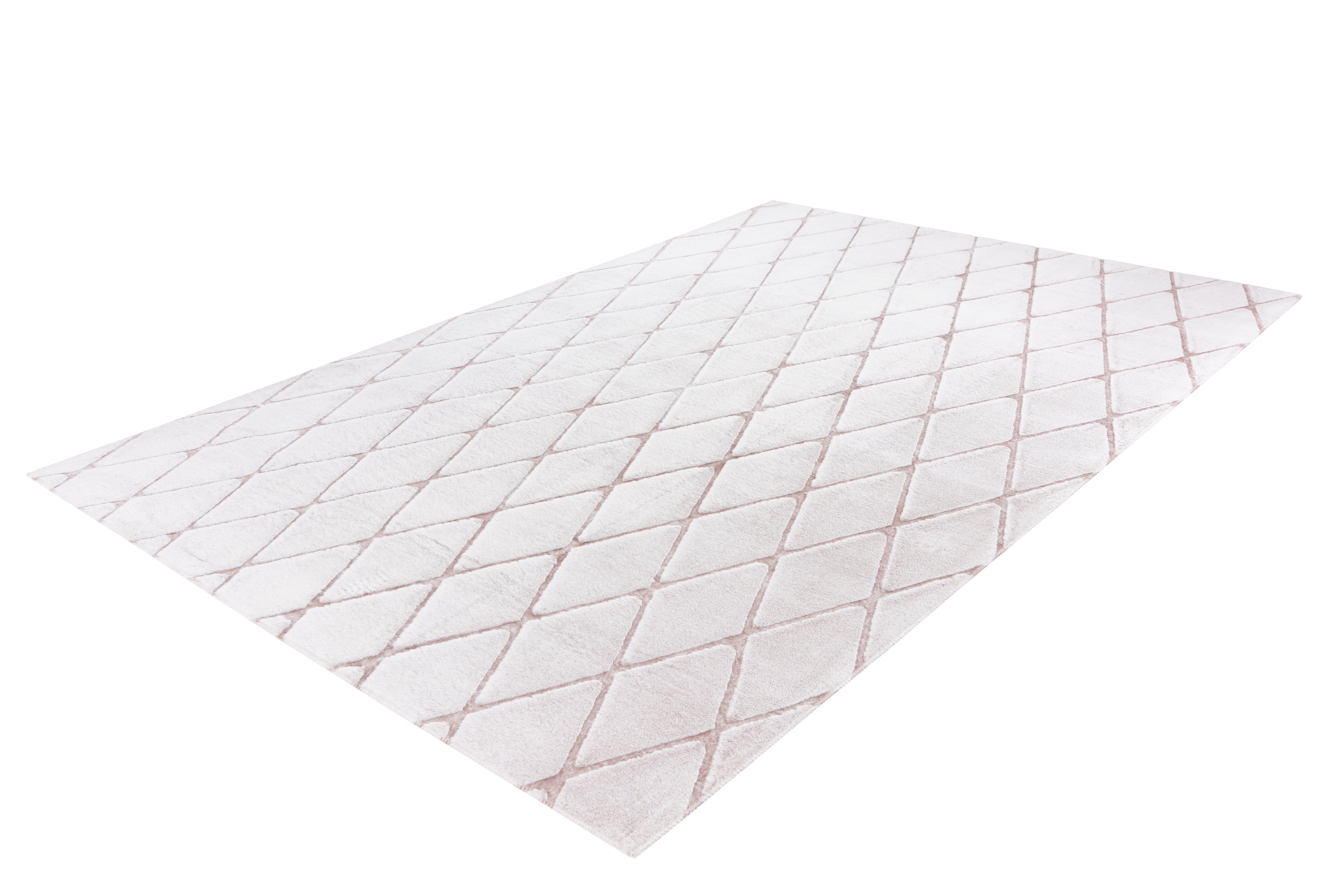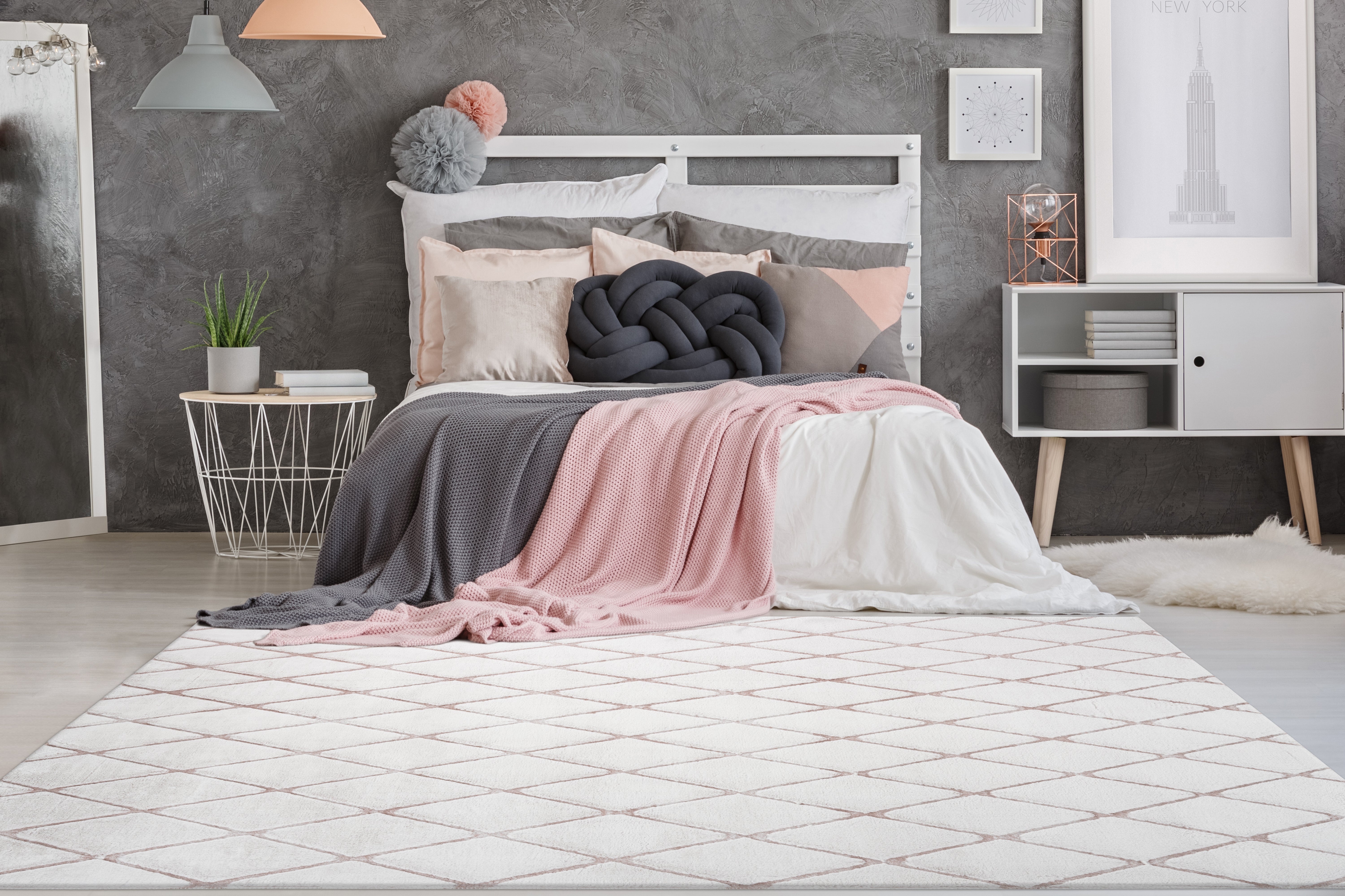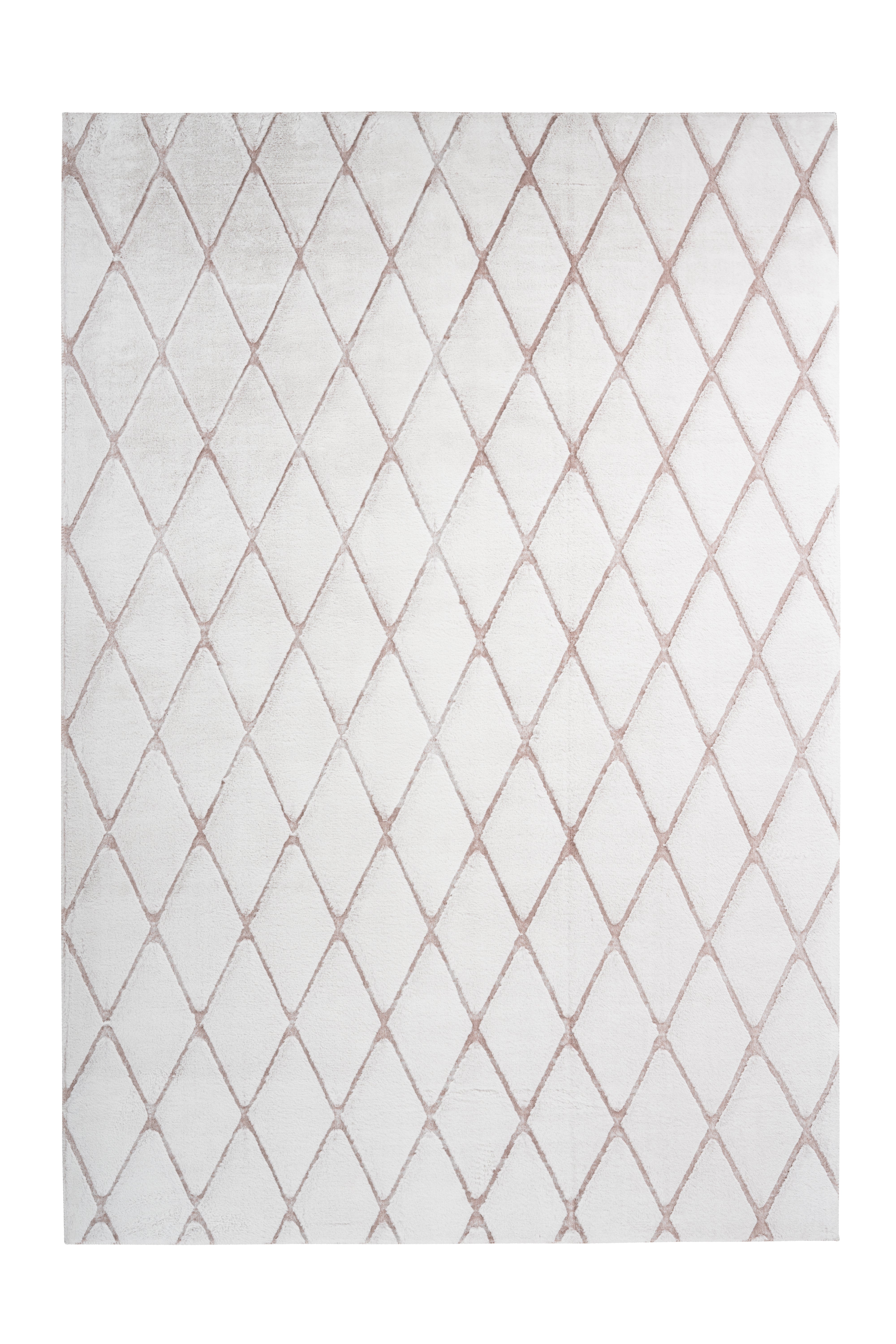 Tæppets udseende er kendetegnet ved dets attraktive prægede mønster, der skaber en slående 3D-effekt. Mønsterets geometriske former giver også tæppet et stilfuldt retro-look. Den ellers enkle, monokrome luv ser godt ud i ethvert opholdsrum og kan takket være sin underspillede elegance kombineres med enhver indretning. Den hyggelige overflade skaber en hyggelig atmosfære i rummet. Tæppet kan også nemt installeres i rum med gulvvarme. En bomuldsbagside og dekorative syninger hele vejen rundt forstærker luven. Samtidig forhindrer overlock-syningen tæppet i at flosse. Tæppets faktiske farve og mønster kan variere fra de viste billeder. Forskellige farvenuancer kan forekomme på grund af forskellig belysning og forskellige luvretninger.