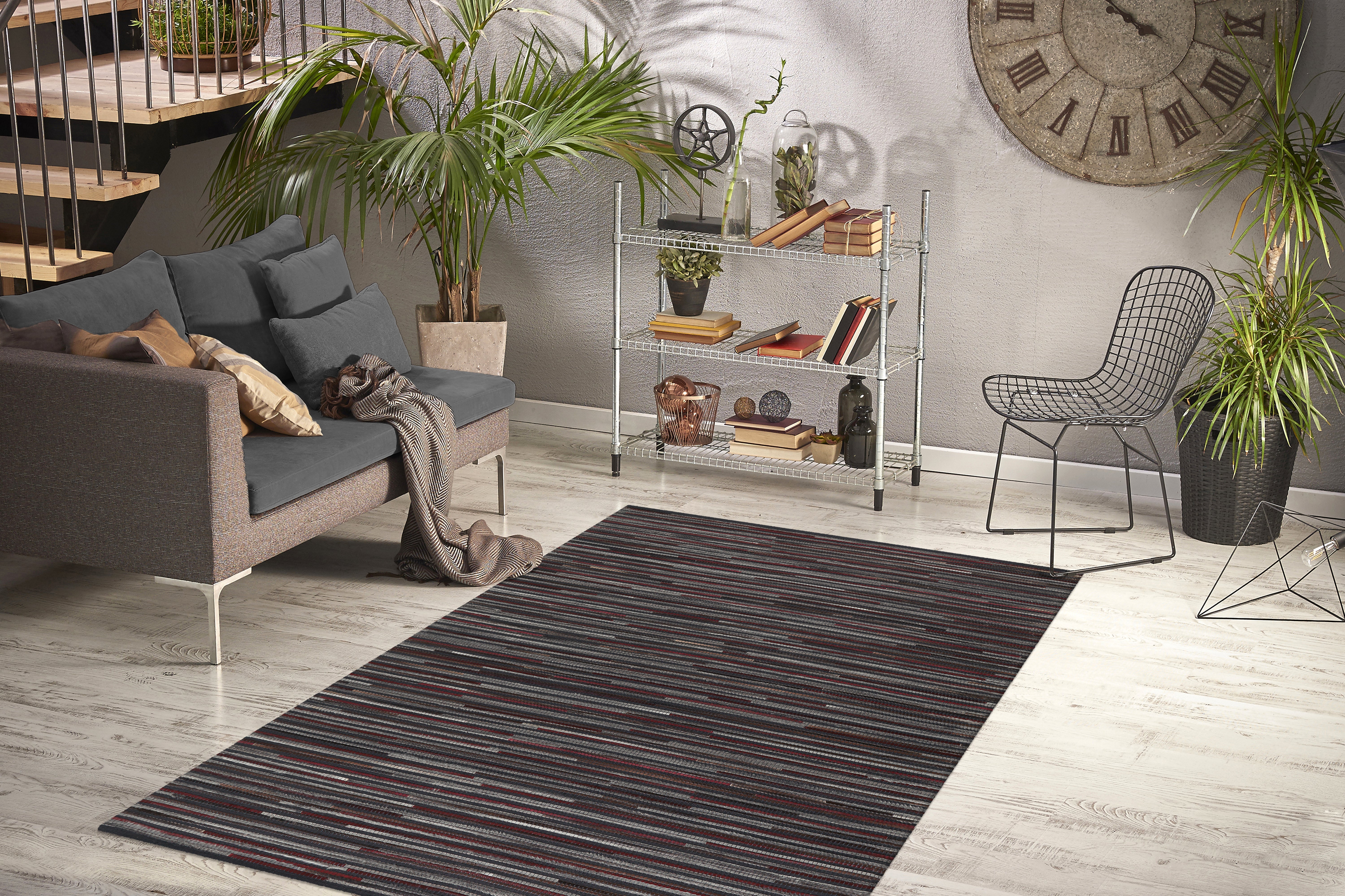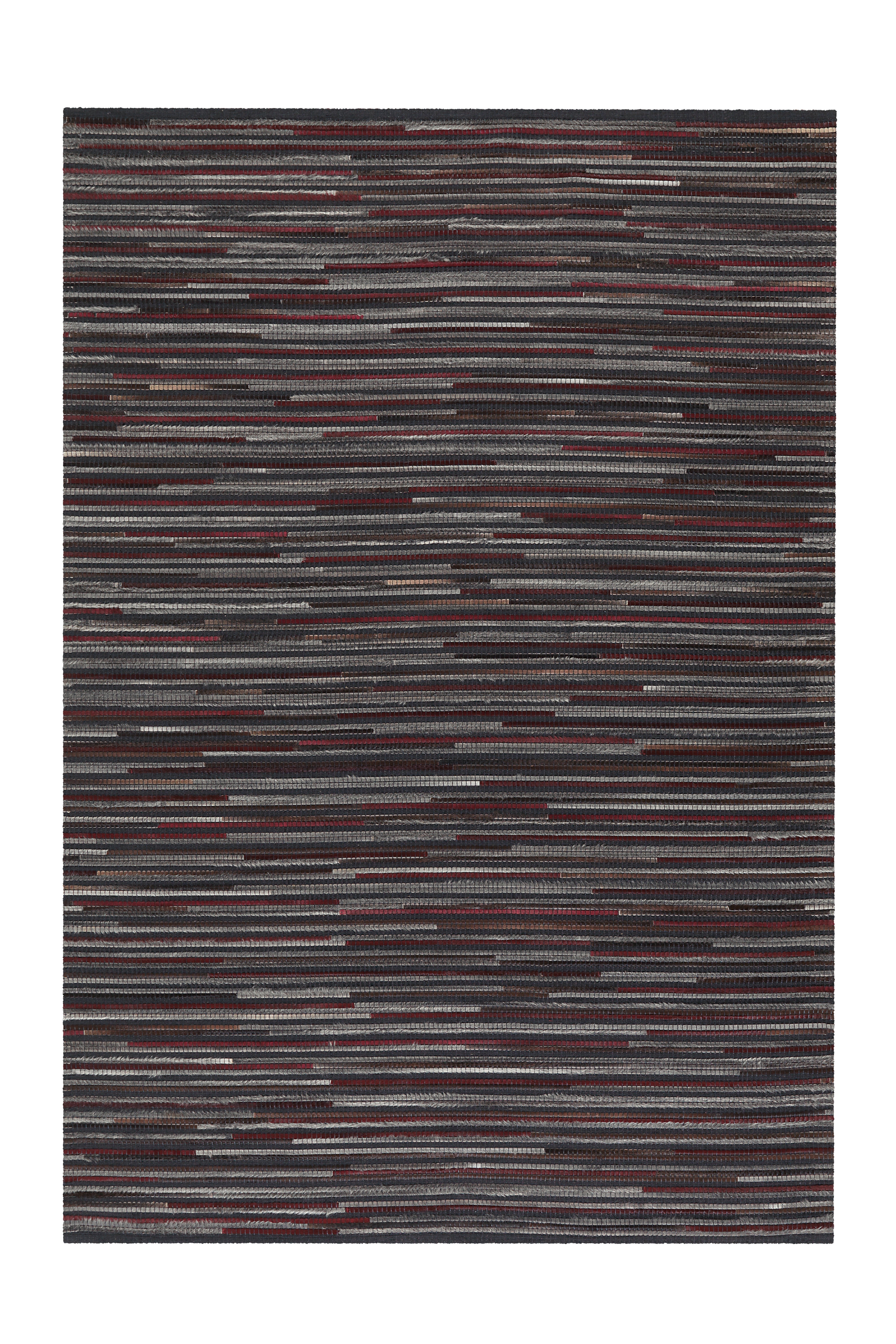 Tæppe med patchwork/stribe-look og læder - Det stilfulde mønster på dette tæppe imponerer med sit enkle farveskema. Dette diskrete, fladluvede tæppe kan bruges i ethvert rum og enhver boligstil – det passer perfekt ind i sine omgivelser. Talrige små områder i forskellige farver karakteriserer det fine, yndefulde mønster i patchwork eller stribe-designet og gør tæppet til et sandt blikfang. De kombinerede materialer af læder, uld og polyester er ikke kun for naturelskere, da materiale blandingen gør tæppet slidstærkt, robust og nemt at pleje. Placer tæppet i rum med eller uden gulvvarme, og nyd den hyggelige, varme atmosfære.