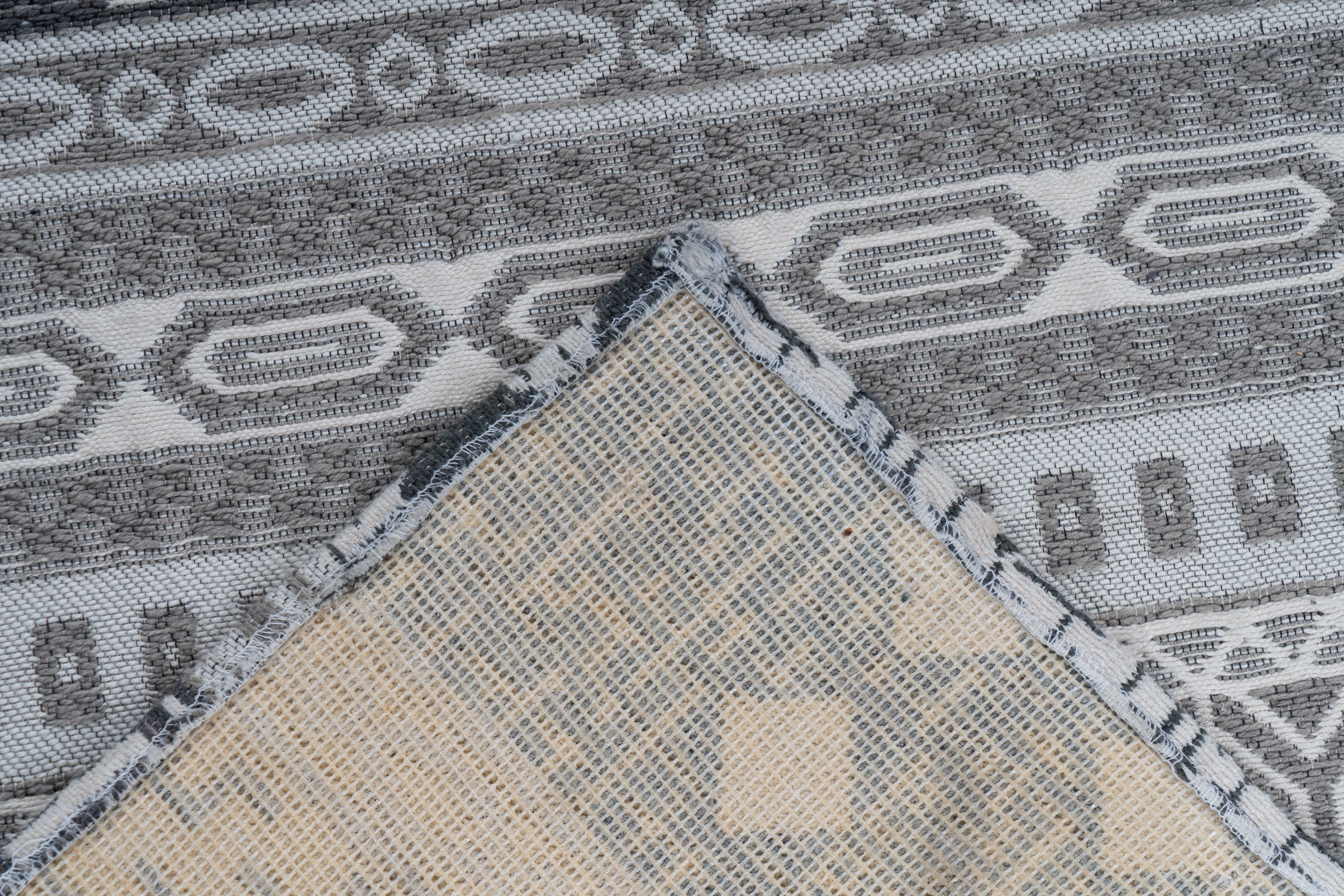 Materialet er robust, holdbart og vejrbestandigt. Takket være en vandgennemtrængelig latexbagside kan der ikke samle sig fugt på overfladen, så tæppet kan efterlades udendørs under alle vejrforhold.